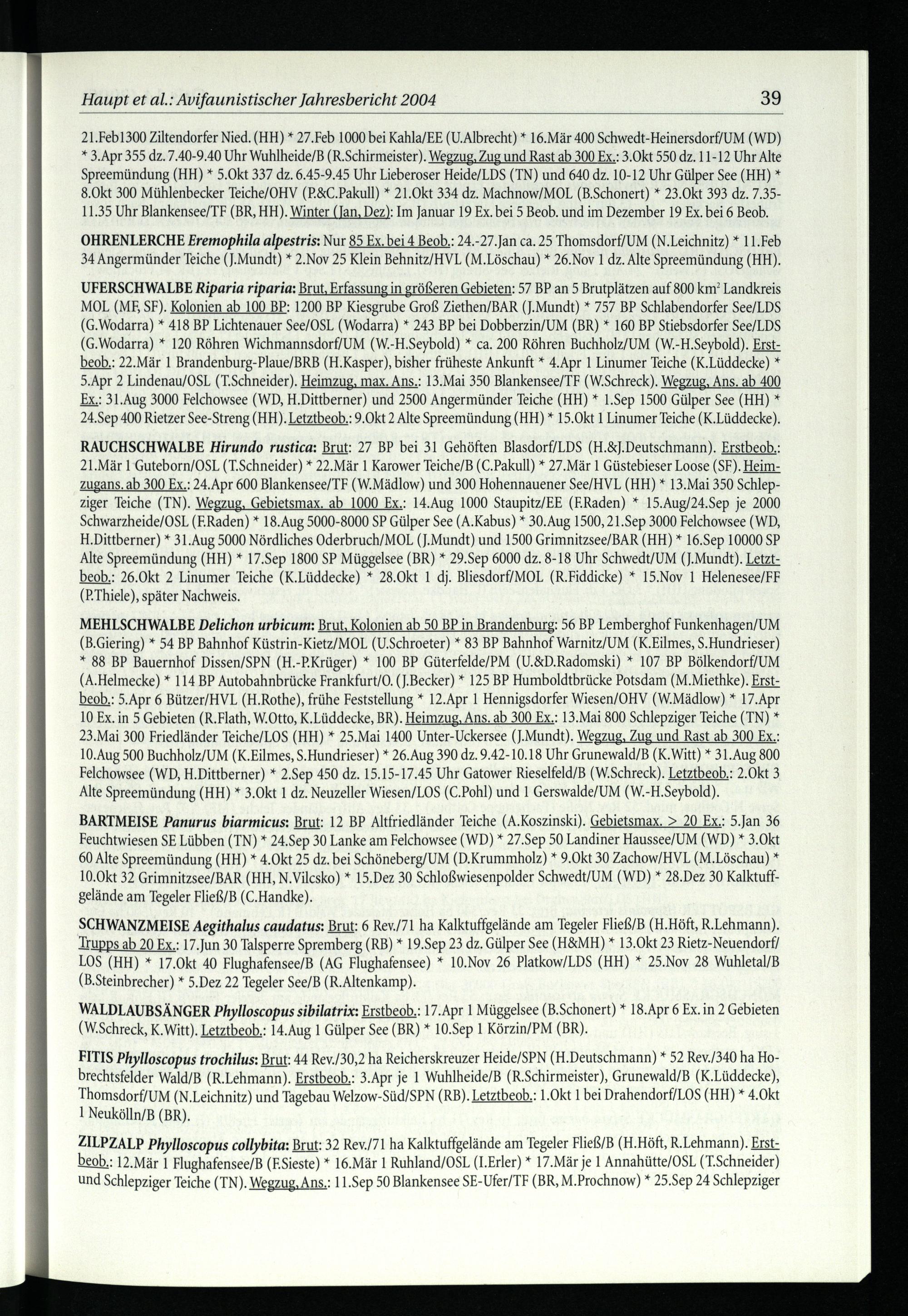 Haupt et al.: Avifaunistischer Jahresbericht 2004 39