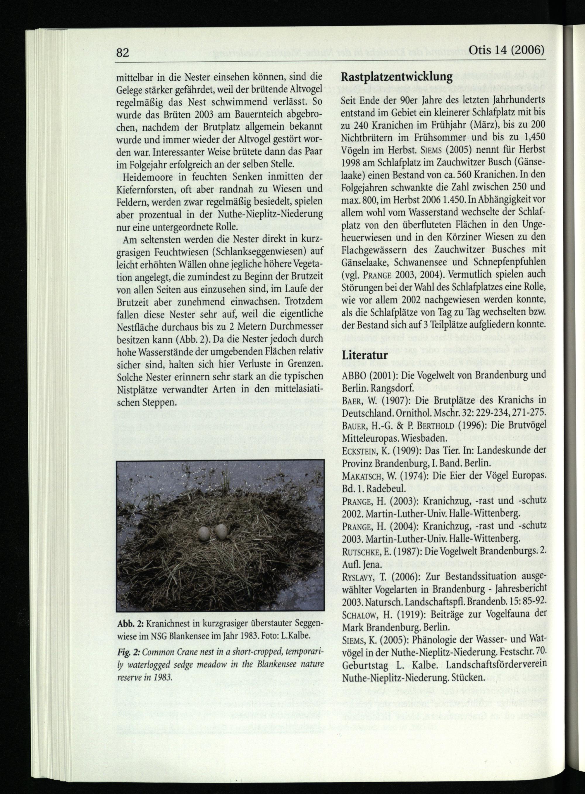 Prance, H.(2003): Kranichzug,-rast und-schutz 2002. Martin-Luther-Univ. Halle-Wittenberg . PRANGE, H.(2004): Kranichzug,-rast und-schutz 2003. Martin-Luther-Univ. Halle-Wittenberg . RUTSCHKE, E.(1987): Die Vogelwelt Brandenburgs. 2. Aufl. Jena .