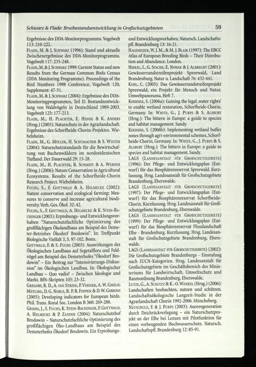 FLADE, M. , H. PLACHTER , R. SCHMIDT& A. WERNER (Hrsg.)(2006): Nature Conservation in Agricultural Ecosystems. Results of the Schorfheide-Chorin Research Project. Wiebelsheim.