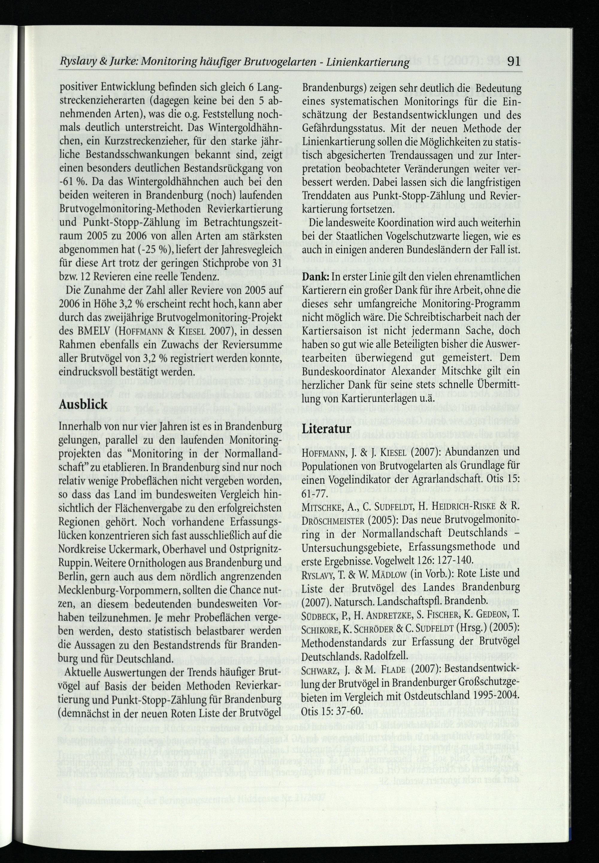 Ryslavy& Jurke: Monitoring häufiger Brutvogelarten- Linienkartierung 91