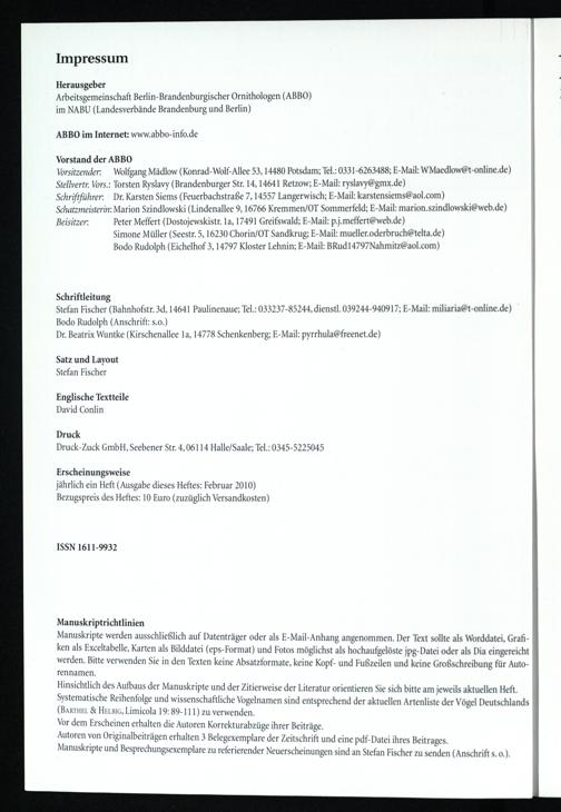 Herausgeber Arbeitsgemeinschaft Berlin-Brandenburgischer Ornithologen(ABBO) im NABU (Landesverbände Brandenburg und Berlin)