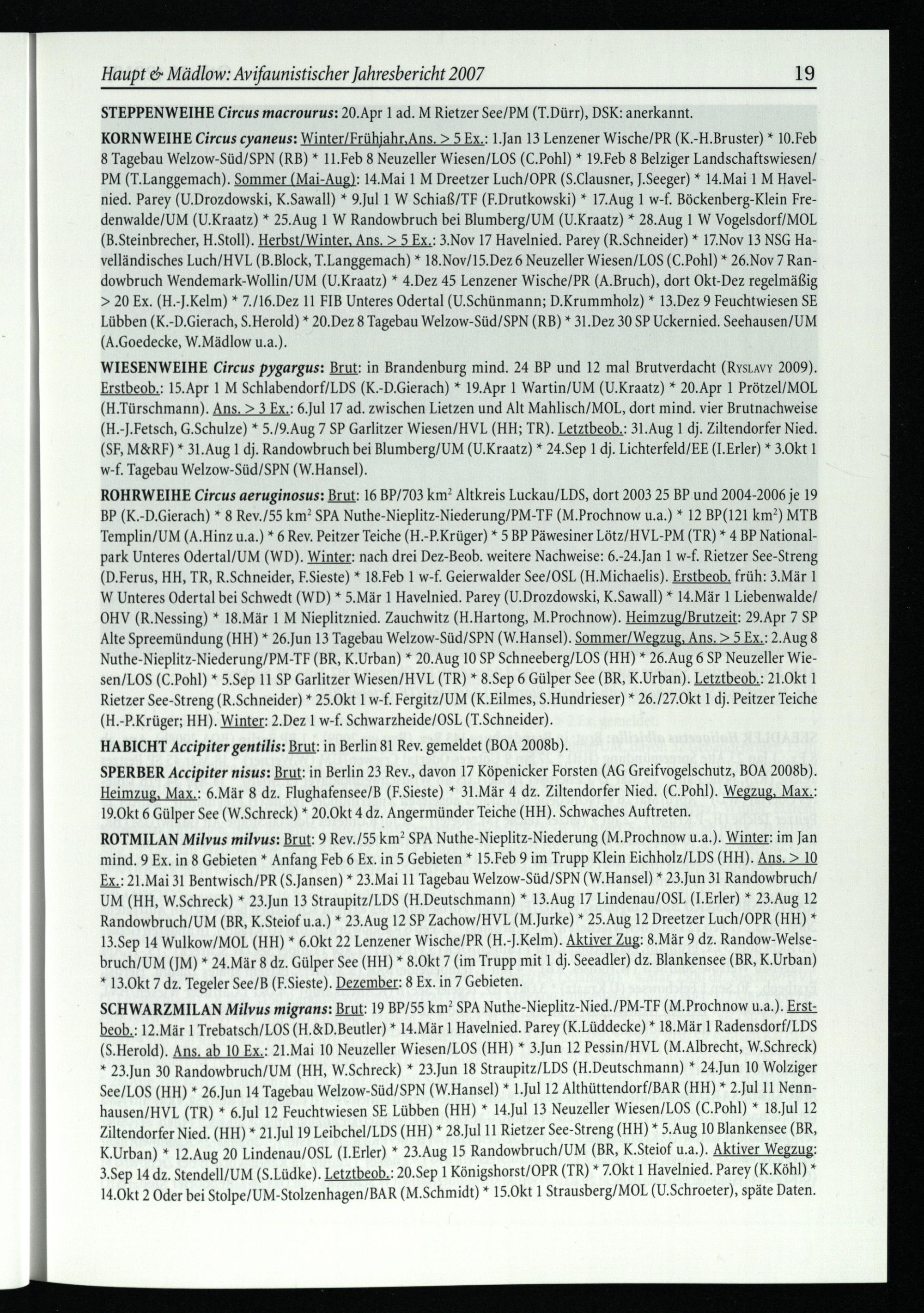 Haupt& Mädlow: Avifaunistischer Jahresbericht 2007 19