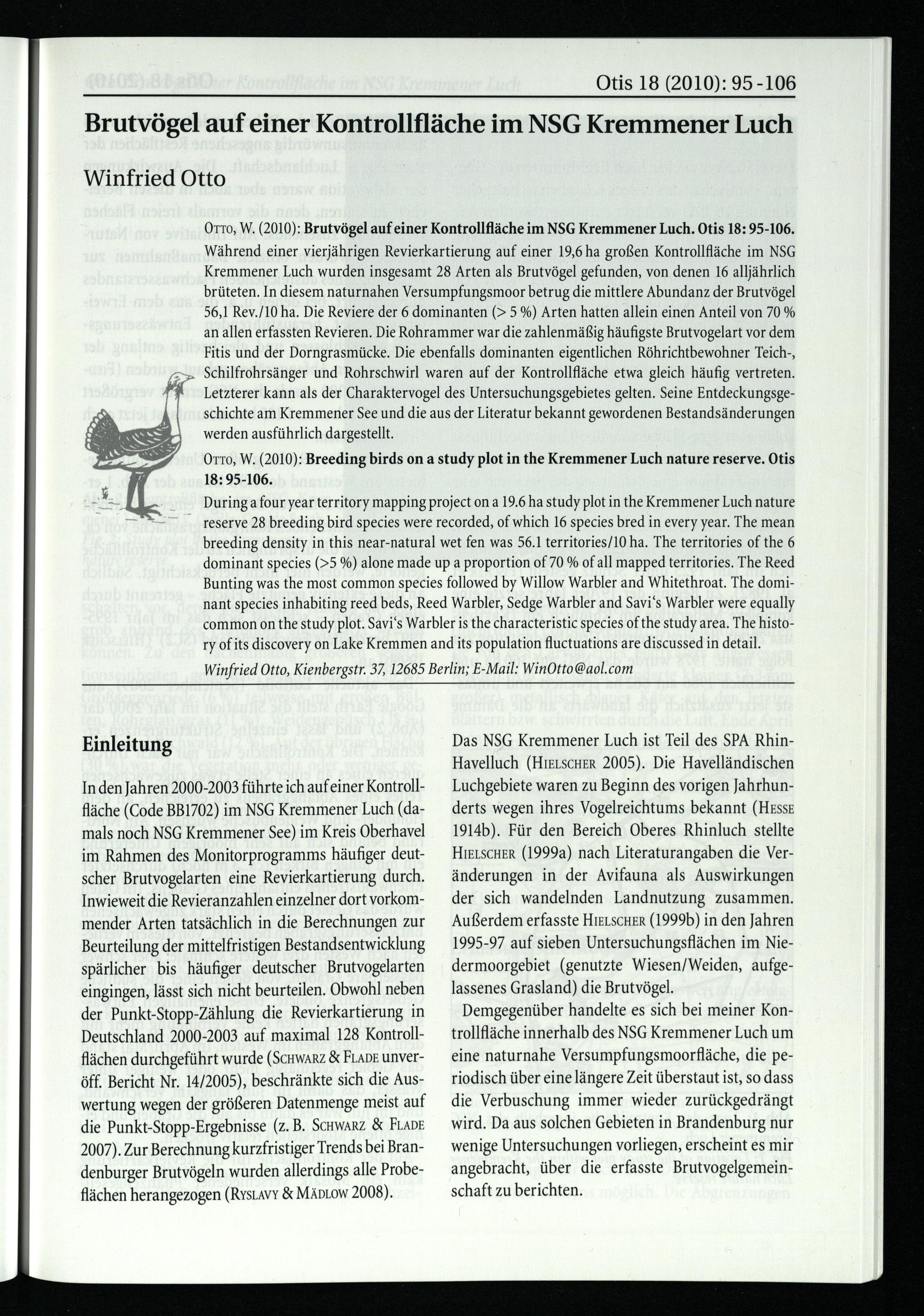 Orrto, W.(2010): Breeding birds on a study plot in the Kremmener Luch nature reserve. Otis 18: 95-106.