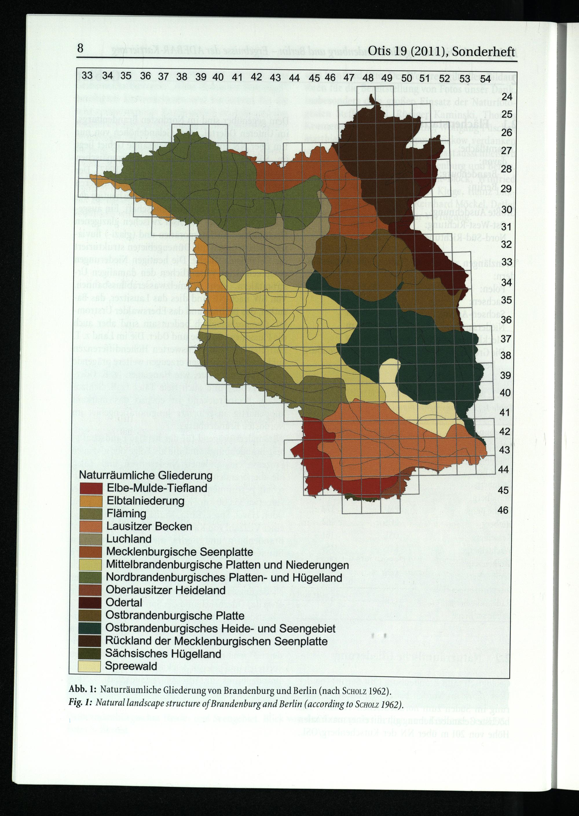 Abb. 1: Naturräumliche Gliederung von Brandenburg und Berlin (nach ScHo1z 1962). Fig, 1: Natural landscape structure of Brandenburg and Berlin (according to ScHo1z 1962).