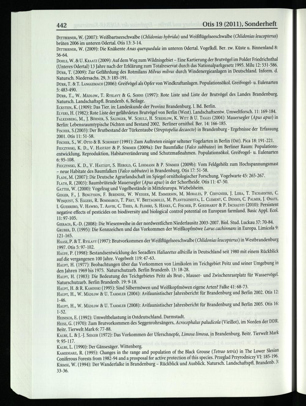 DouLe, W.& U. Kraatz(2009): Auf dem Weg zum Wildnisgebiet- Eine Kartierung der Brutvögel im Polder Friedrichsthal (Unteres Odertal ) 13 Jahre nach der Erklärung zum Totalreservat durch das Nationalparkgesetz 1995. Milu 12: 531-586. Dürr, T.(2009): Zur Gefährdung des Rotmilans Milvus milvus durch Windenergieanlagen in Deutschland . Inform. d. Natursch. Niedersachs. 29, 3: 185-191.