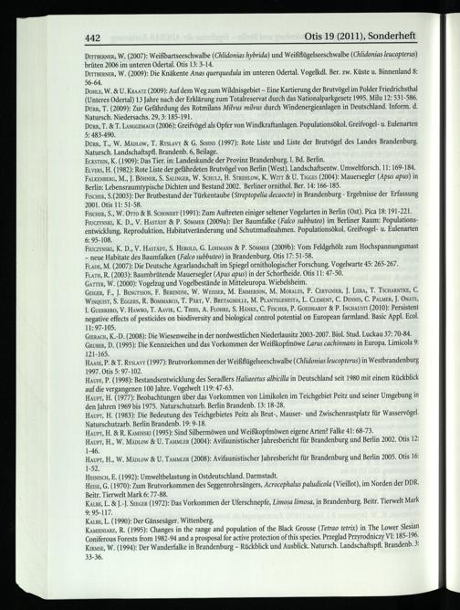 Hauer, H., W. Mäpiow& U. TaMmmLer(2008): Avifaunistischer Jahresbericht für Brandenburg und Berlin 2005. Otis 16: 1-52.