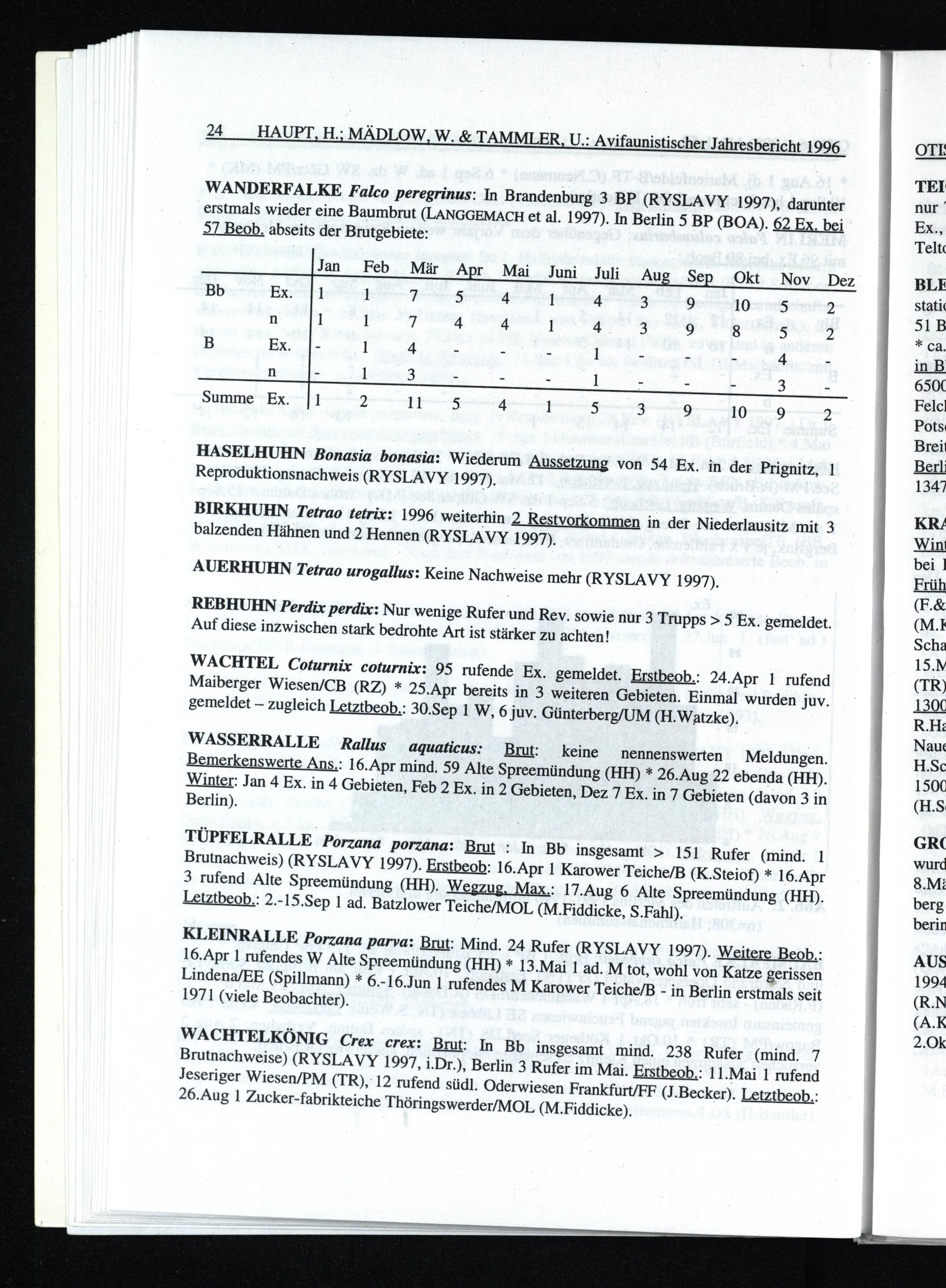 24 HAUPT, H.; MÄDLOW, W.& TAMMLER, U.: Avifaunistischer Jahresbericht 1996