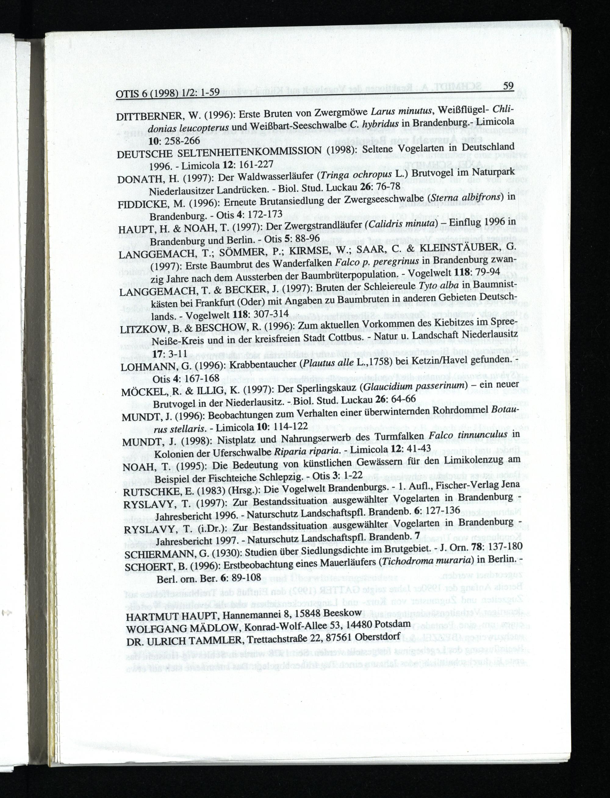 RYSLAVY, T.(1997): Zur Bestandssituation ausgewählter Vogelarten in Brandenburg Jahresbericht 1996.- Naturschutz Landschaftspfl. Brandenb. 6: 127-136