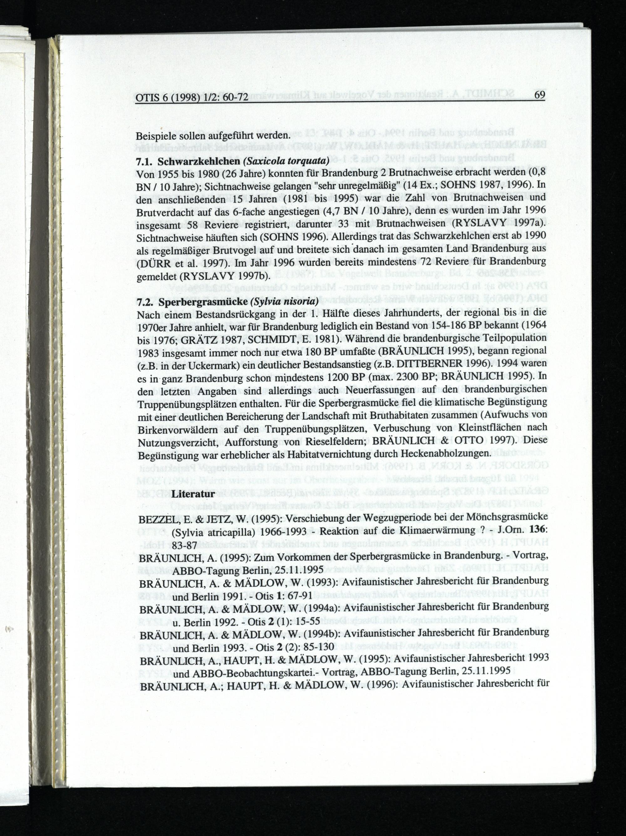 BRÄUNLICH, A., HAUPT, H.& MÄDLOW, W.(1995): Avifaunistischer Jahresbericht 1993 und ABBO-Beobachtungskartei.- Vortrag, ABBO-Tagung Berlin , 25.11.1995