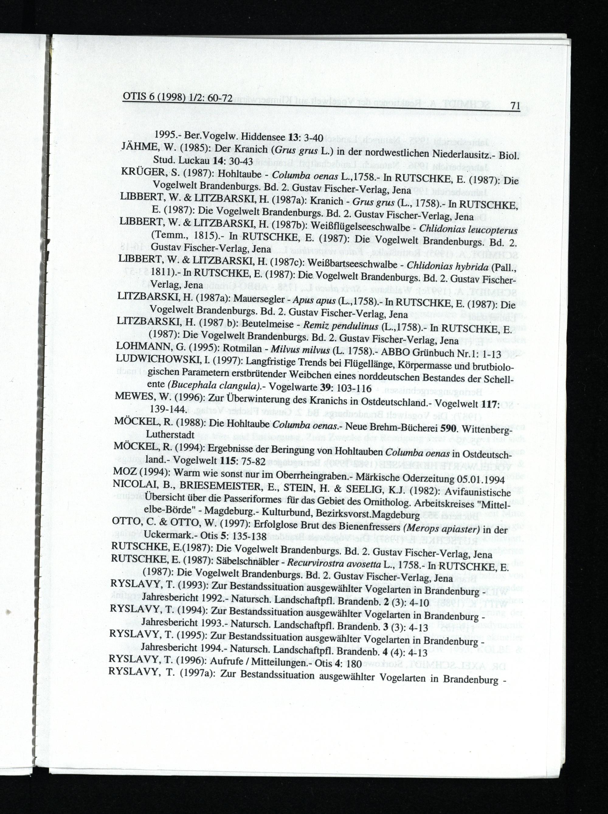 LIBBERT, W.& LITZBARSKL H.(1987a): Kranich- Grus grus (L., 1758).- In RUTSCHKE, E.(1987): Die Vogelwelt Brandenburgs. Bd. 2. Gustav Fischer-Verlag , Jena