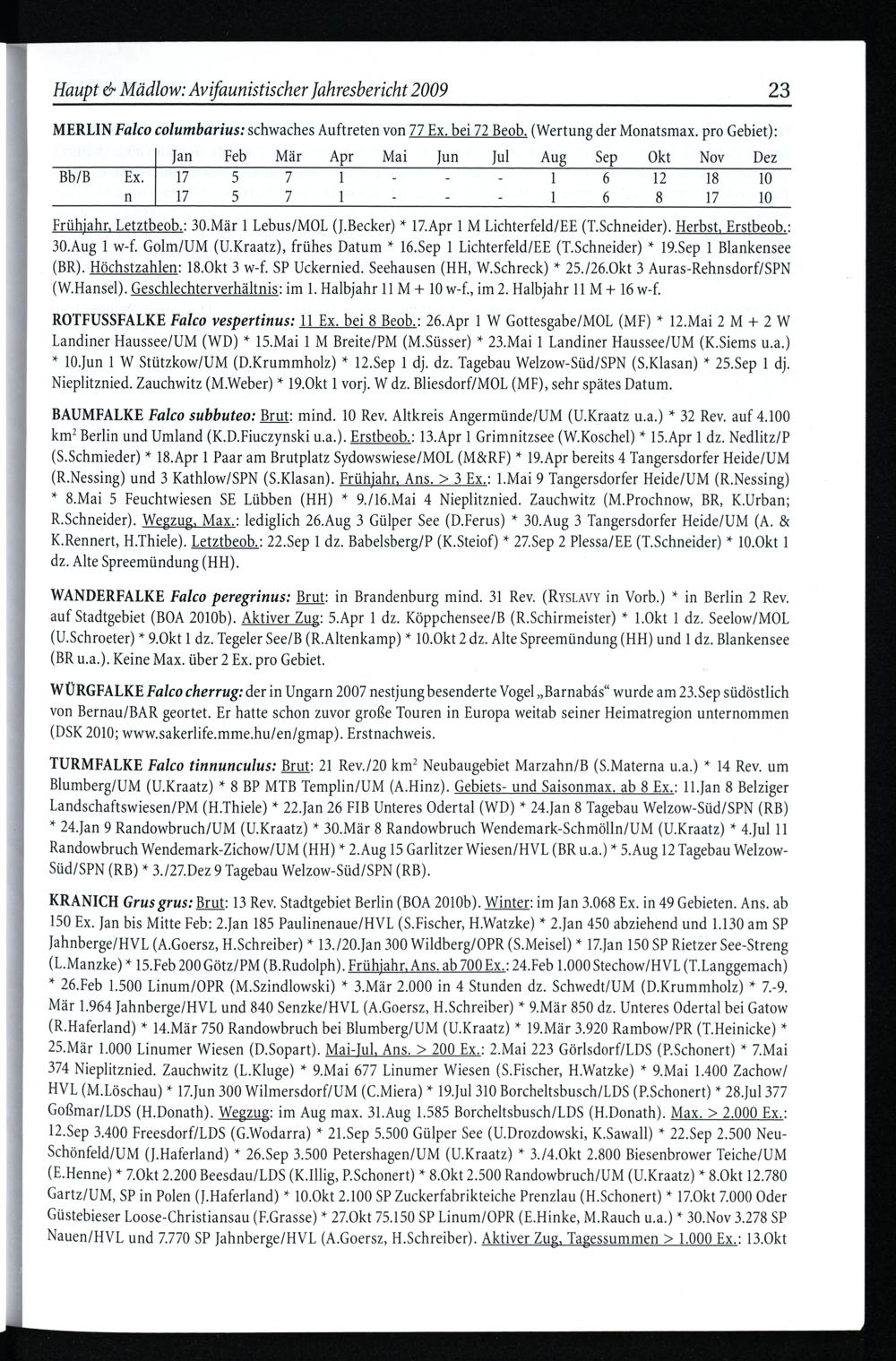 Haupt& Mädlow: Avifaunistischer Jahresbericht 2009 23