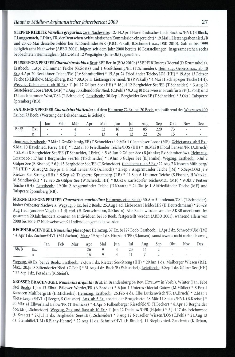 Haupt& Mädlow: Avifaunistischer Jahresbericht 2009 27