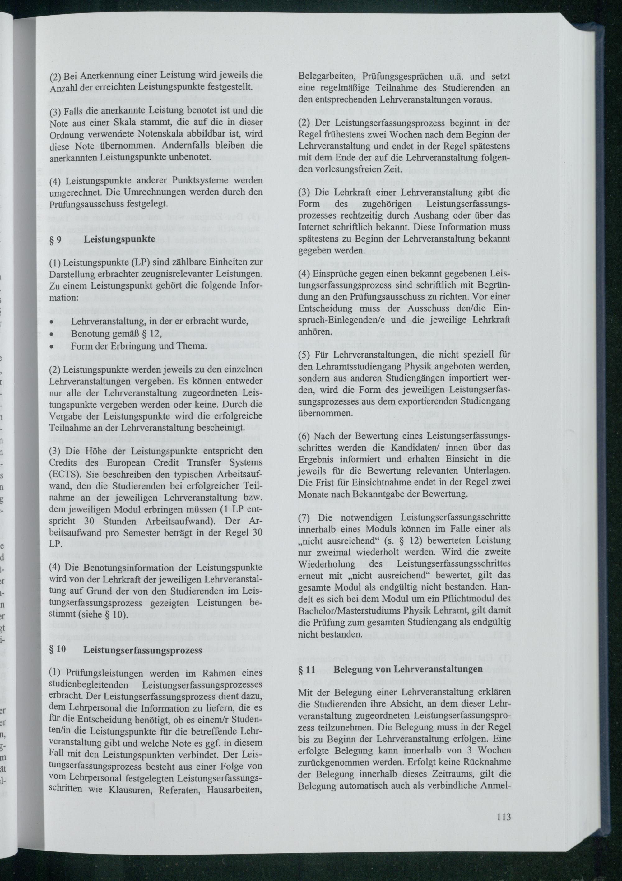§ 11 Belegung von Lehrveranstaltungen