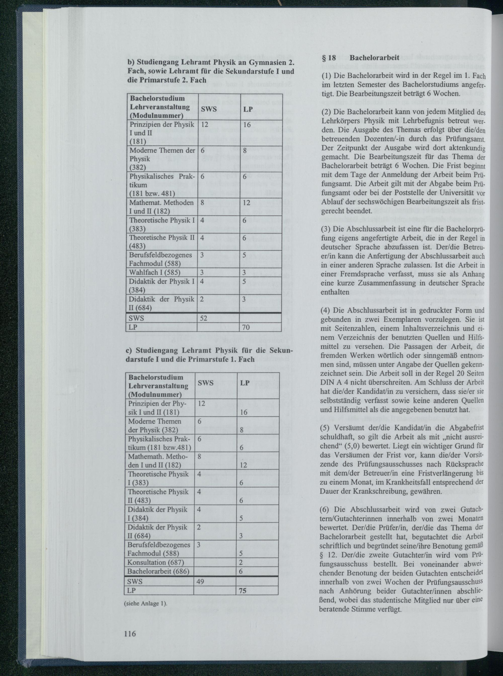 b) Studiengang Lehramt Physik an Gymnasien 2. Fach, sowie Lehramt für die Sekundarstufe I und die Primarstufe 2. Fach