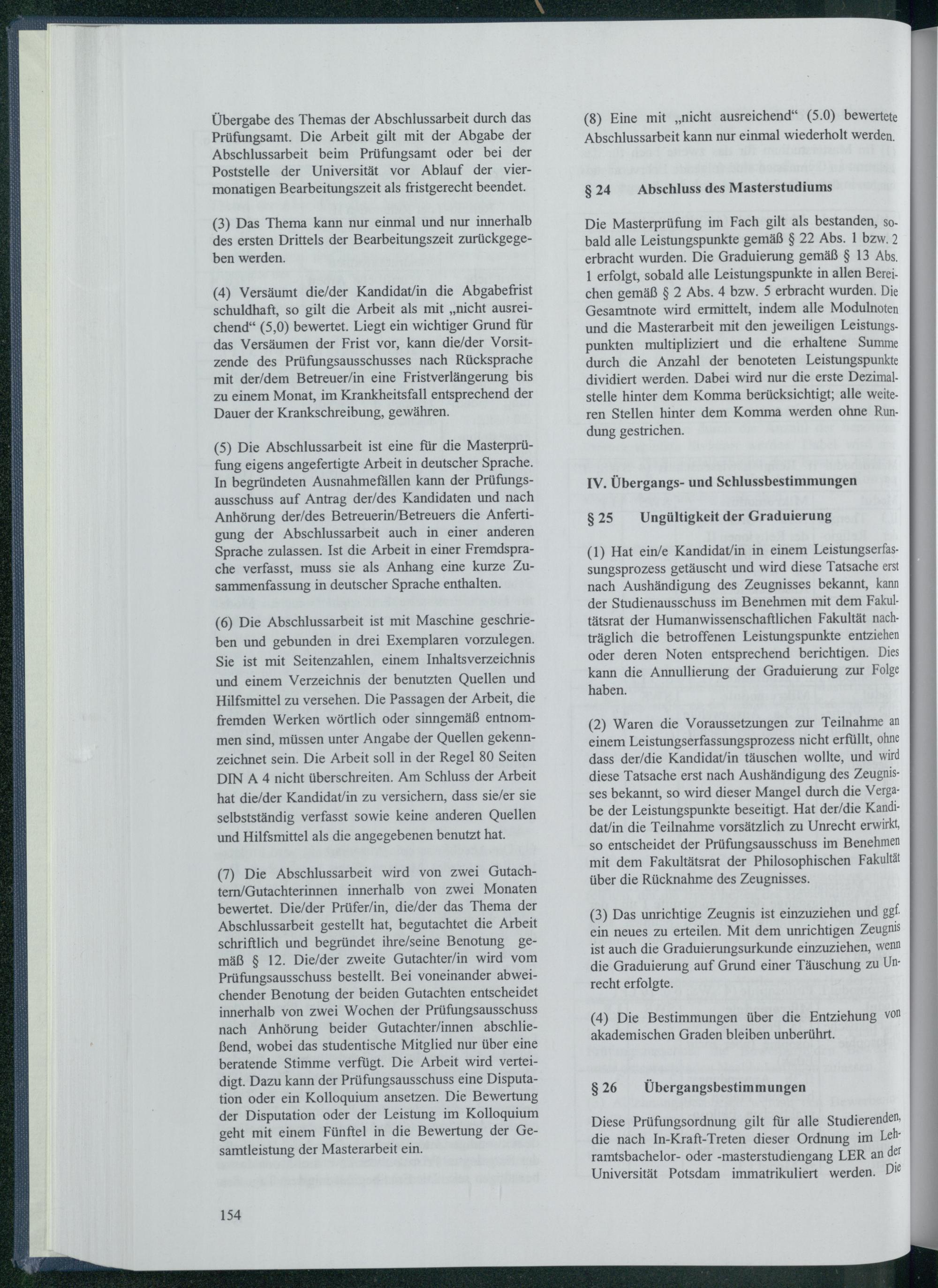 Diese Prüfungsordnung gilt für alle Studierenden, die nach In- Kraft- Treten dieser Ordnung im Lehramtsbachelor- oder-masterstudiengang LER an Universität Potsdam immatrikuliert werden. Die