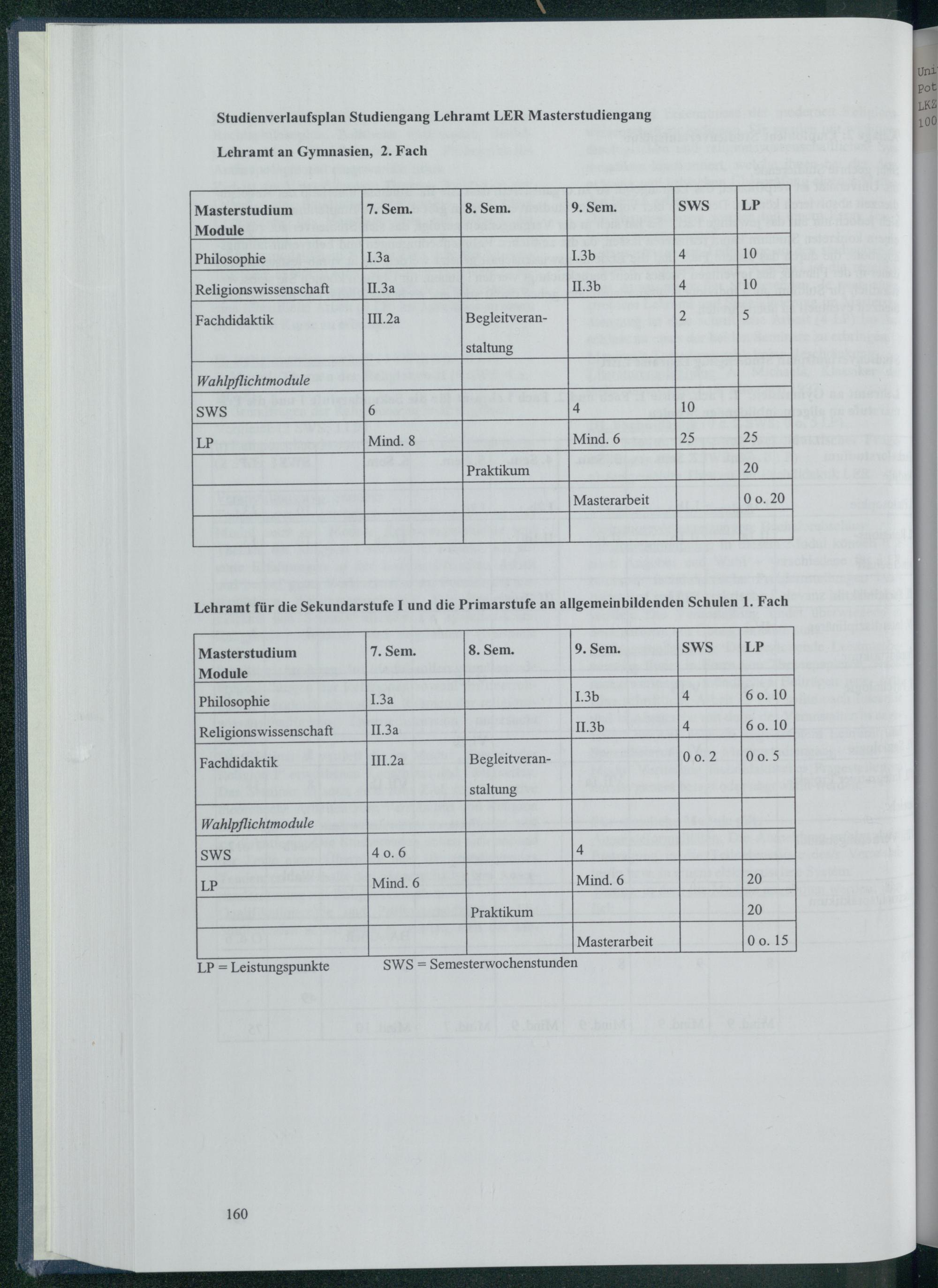 Studienverlaufsplan Studiengang Lehramt LER Masterstudiengang
