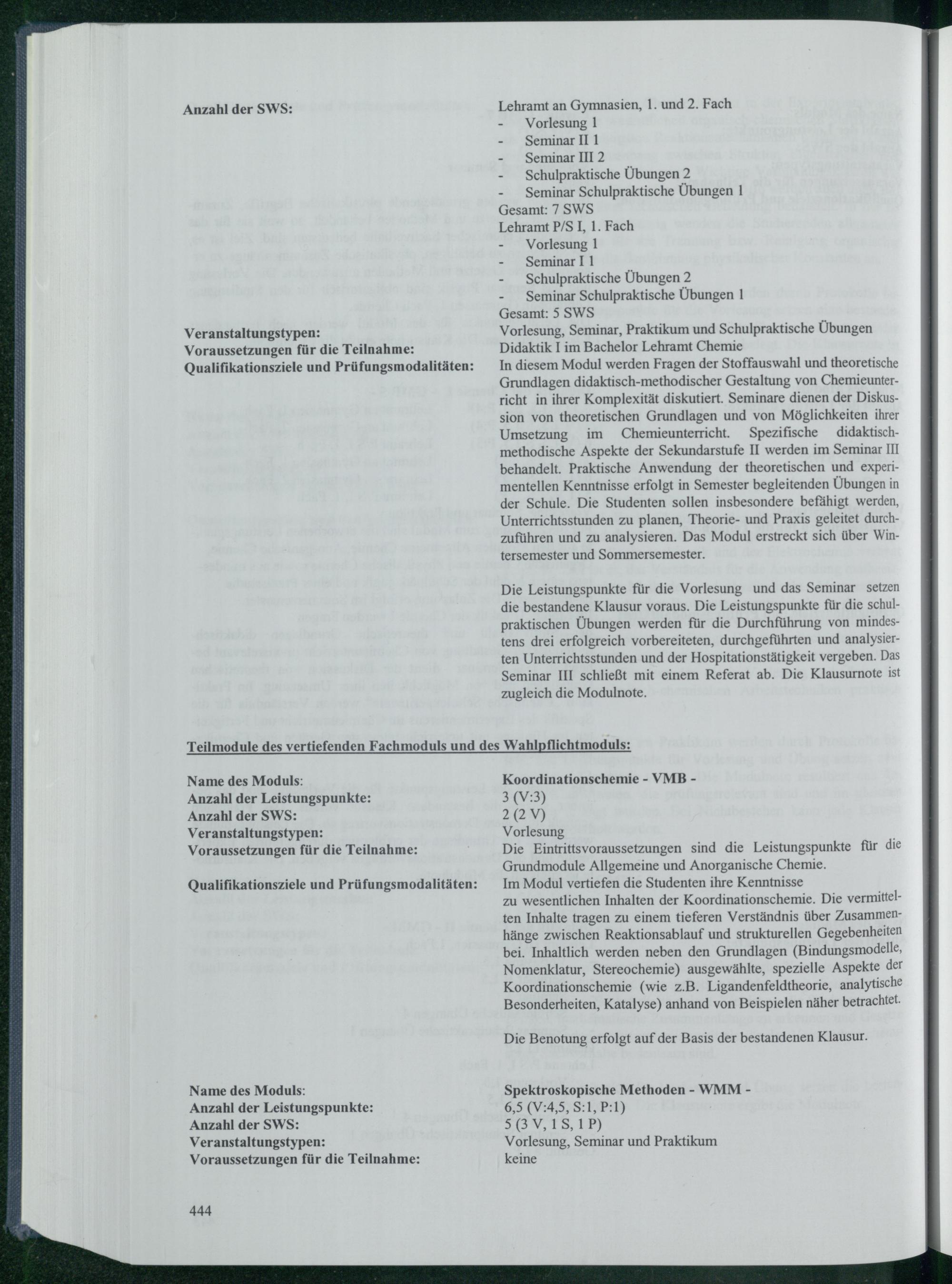 Vorlesung, Seminar, Praktikum und Schulpraktische Übungen Didaktik I im Bachelor Lehramt Chemie