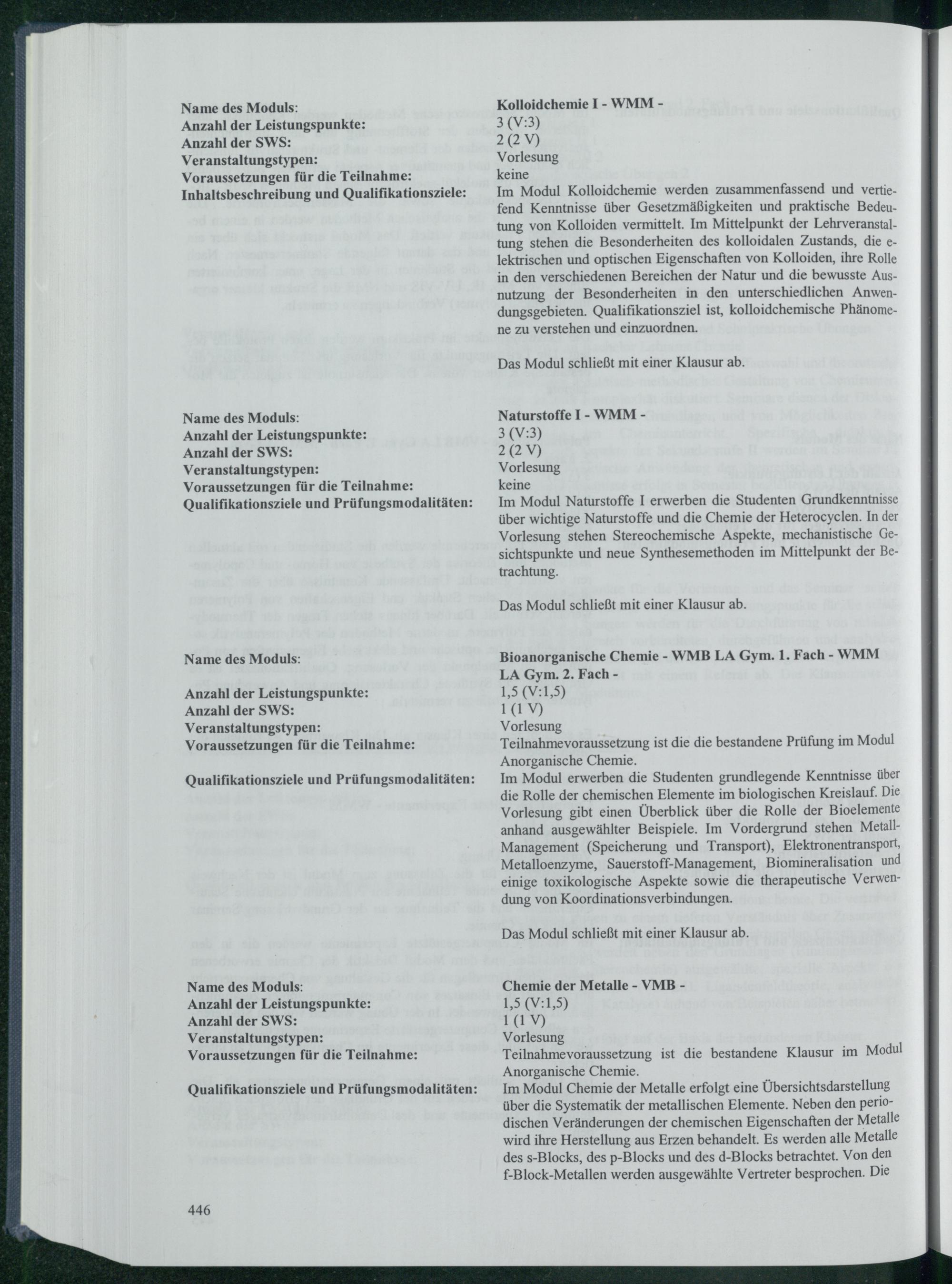 Bioanorganische Chemie- WMB LA Gym. 1. Fach- WMM LA Gym. 2. Fach