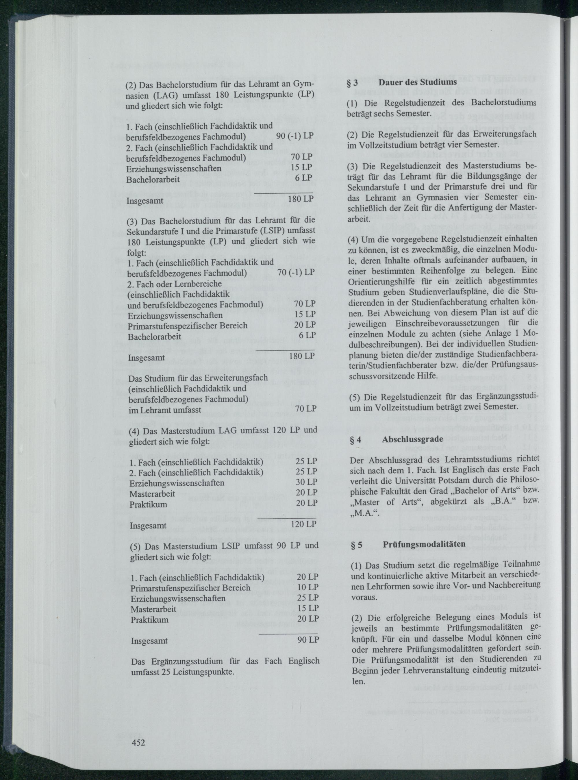 ( 2) Das Bachelorstudium für das Lehramt an Gymnasien( LAG) umfasst 180 Leistungspunkte( LP) und gliedert sich wie folgt: