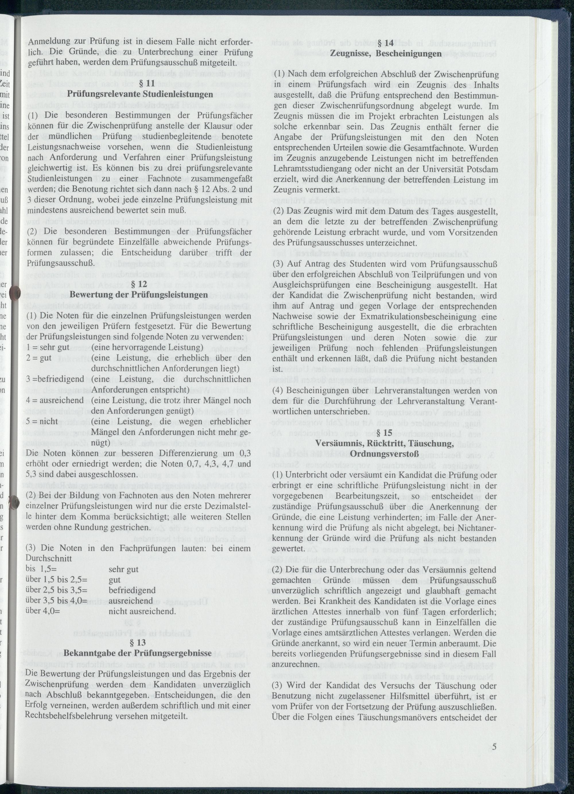 werden; die Benotung richtet sich dann nach§ 12 Abs. 2 und 3 dieser Ordnung, wobei jede einzelne Prüfungsleistung mit mindestens ausreichend bewertet sein muß. wxd- d