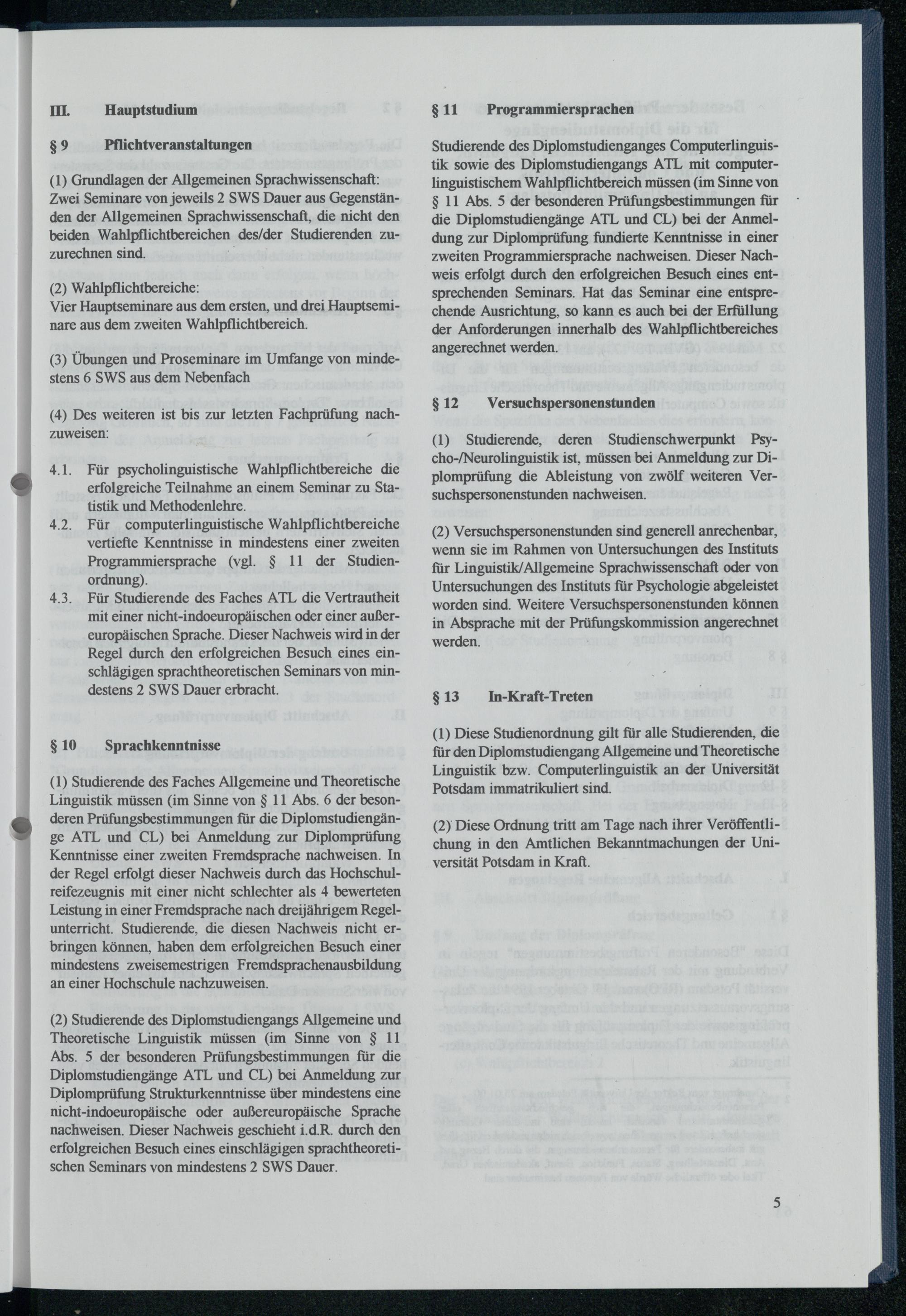( 1) Diese Studienordnung gilt für alle Studierenden, die für den Diplomstudiengang Allgemeine und Theoretische Linguistik bzw. Computerlinguistik an der Universität Potsdam immatrikuliert sind.