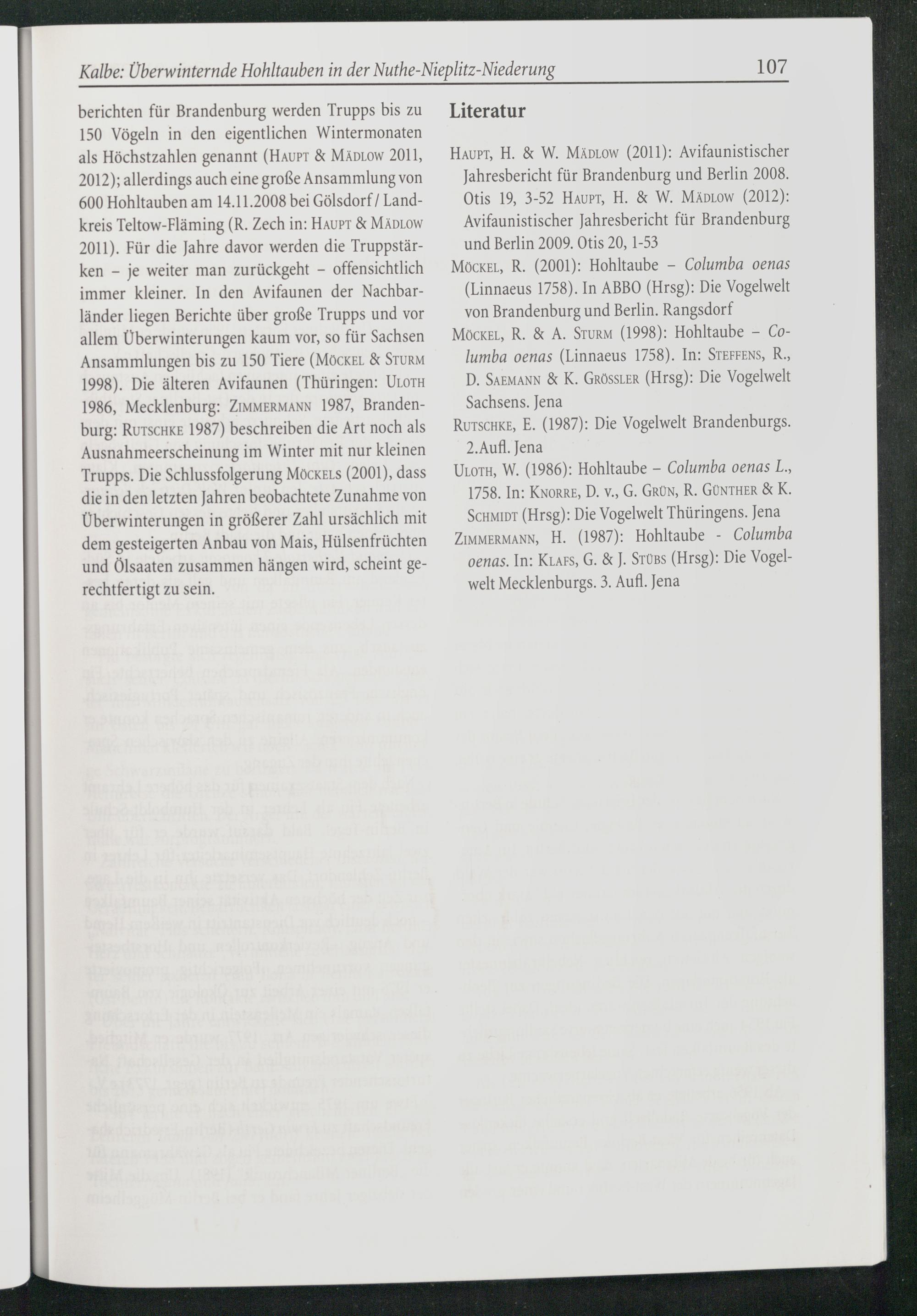ULO0oTH, W.(1986): Hohltaube- Columba oenas L., 1758. In: Knorre, D. v., G. GRÜN, R. GÜNTHER& K. ScHMIDT(Hrsg ): Die Vogelwelt Thüringens . Jena