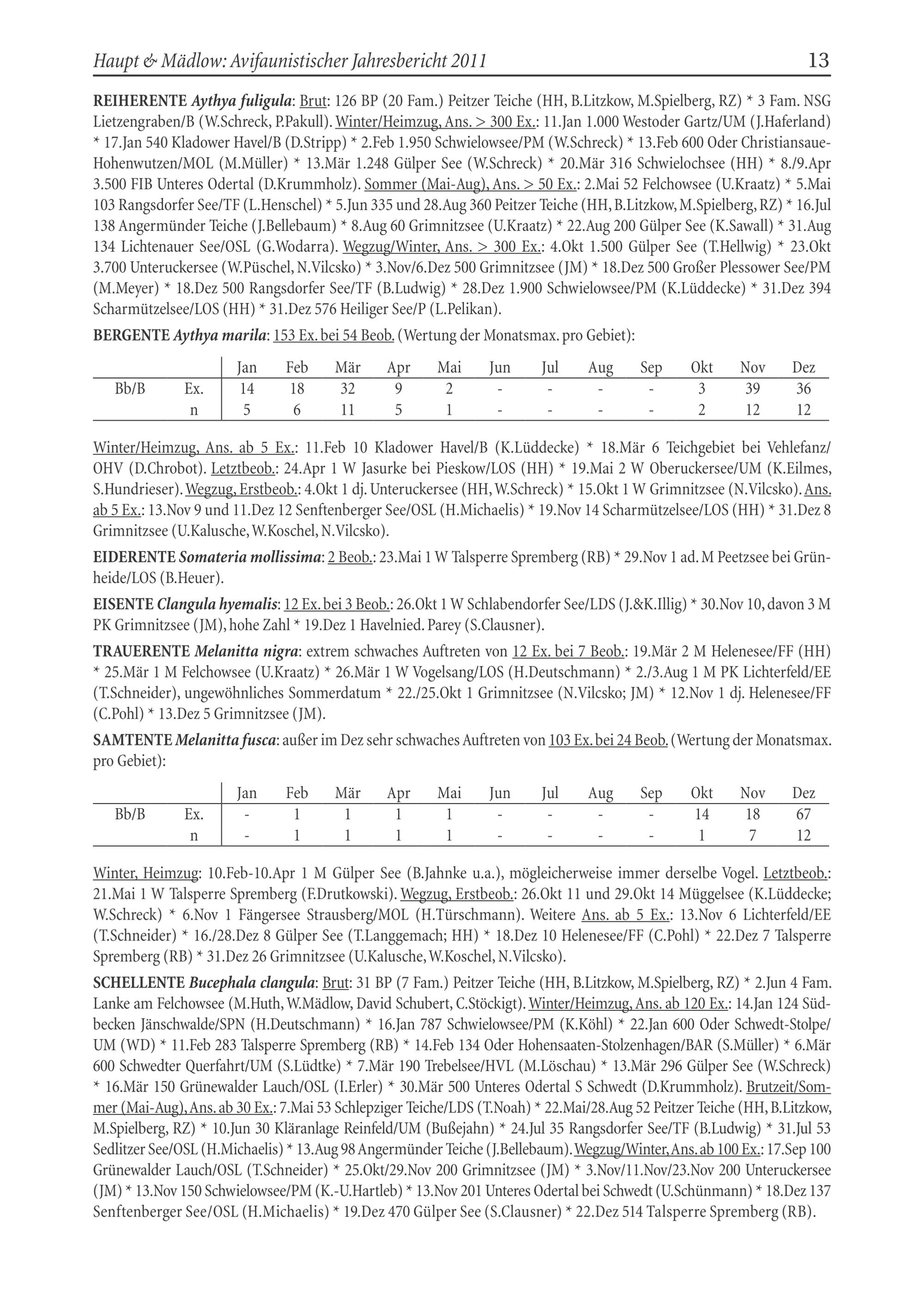 Haupt& Mädlow: Avifaunistischer Jahresbericht 2011 13