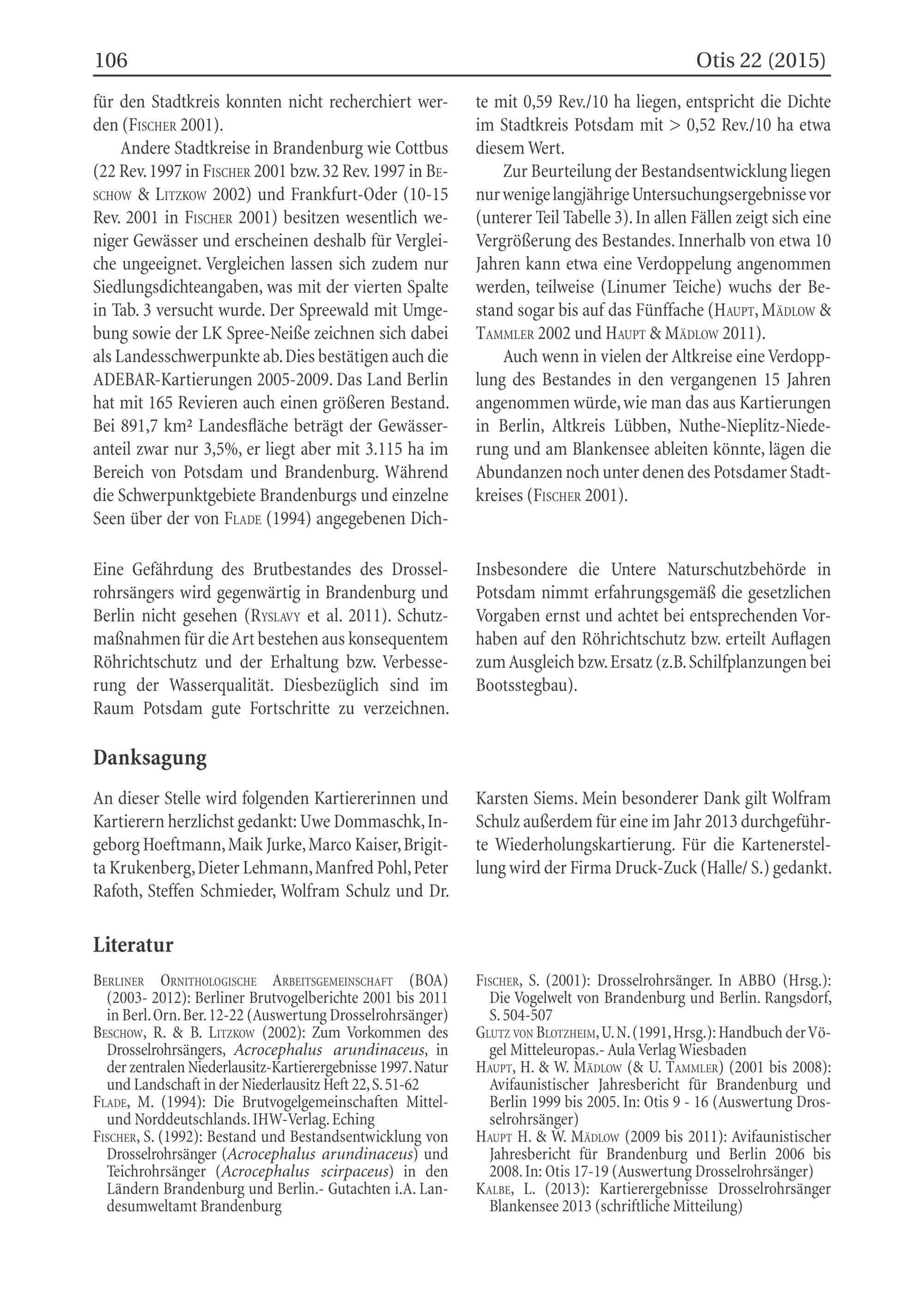 HavpTt H.& W. MäpLow(2009 bis 2011): Avifaunistischer Jahresbericht für Brandenburg und Berlin 2006 bis 2008. In: Otis 17-19(Auswertung Drosselrohrsänger)