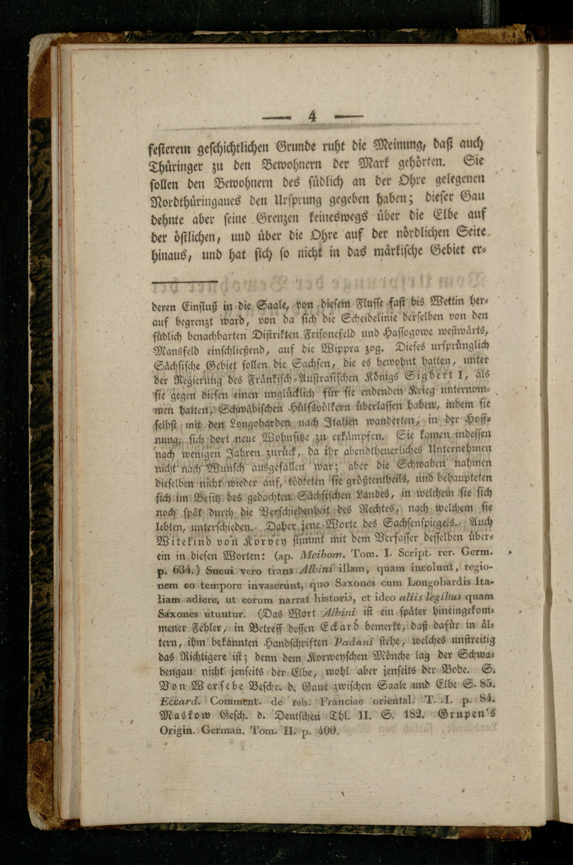 beren Einfluß in die Saale, von diesem Flusse fast bis Wettin herauf begrenzt ward, von da sich die Scheidelinie derselben von den südlich benachbarten Distrikten Frisonefeld und Haflogowe westwärts, Mansfeld einschlicßend, auf die Wippra zog. Dieses ursprünglich Sächsische Gebiet sollen die Sachsen, die es bewohnt hatten, unter der Regierüsig des Fränkisch-Austrassschen Kdnigs Sigbert I, als sie gegen diesen einen unglücklich für sie endenden Krieg unternommen hatten p Schwäbischen HülfSvölkern überlasten haben,, indem sie selbst mit den Langobarden nach Italien wunderten, in der Hoffnung, sich dort neue Wohnsitze zu erkämpfen. Sie kennen indessen nach wenigen Jahren zurück, da ihr abendthcnerlicheS Unternehmen nicht' nachWunsch ausgefallen war; aber die Schwaben Nahmen dieselben nicht wieder auf,' tvdteten sie größtentheils, und behaupteten sich im Besitz dcS gedachten Sächsischen Landes, in welchem sie sich noch spat durch die Verschiedenheit des Rechtes, nach welchem sie lebten, unterschieden. Daher, jene Worte des Sachsenspiegels- Auch Witekind von Korvey stimmt mit dem Verfasser desselben überein in diesen Worten: (ap. /Her'üom. lom. I- 8cri^>t- rer. Oerm. p. 634.) 8neui vero trau» ^kÜu'nr' illsm, c;uam incolunt, rcgio- nem eo tempore iuvaserunt, <pic> Laxones cum l-ongattaidis Ita- siam artiere, ut eorum narrst Irnstoria, et iclec, a/rr§ /ggrbu.k ,,ULM