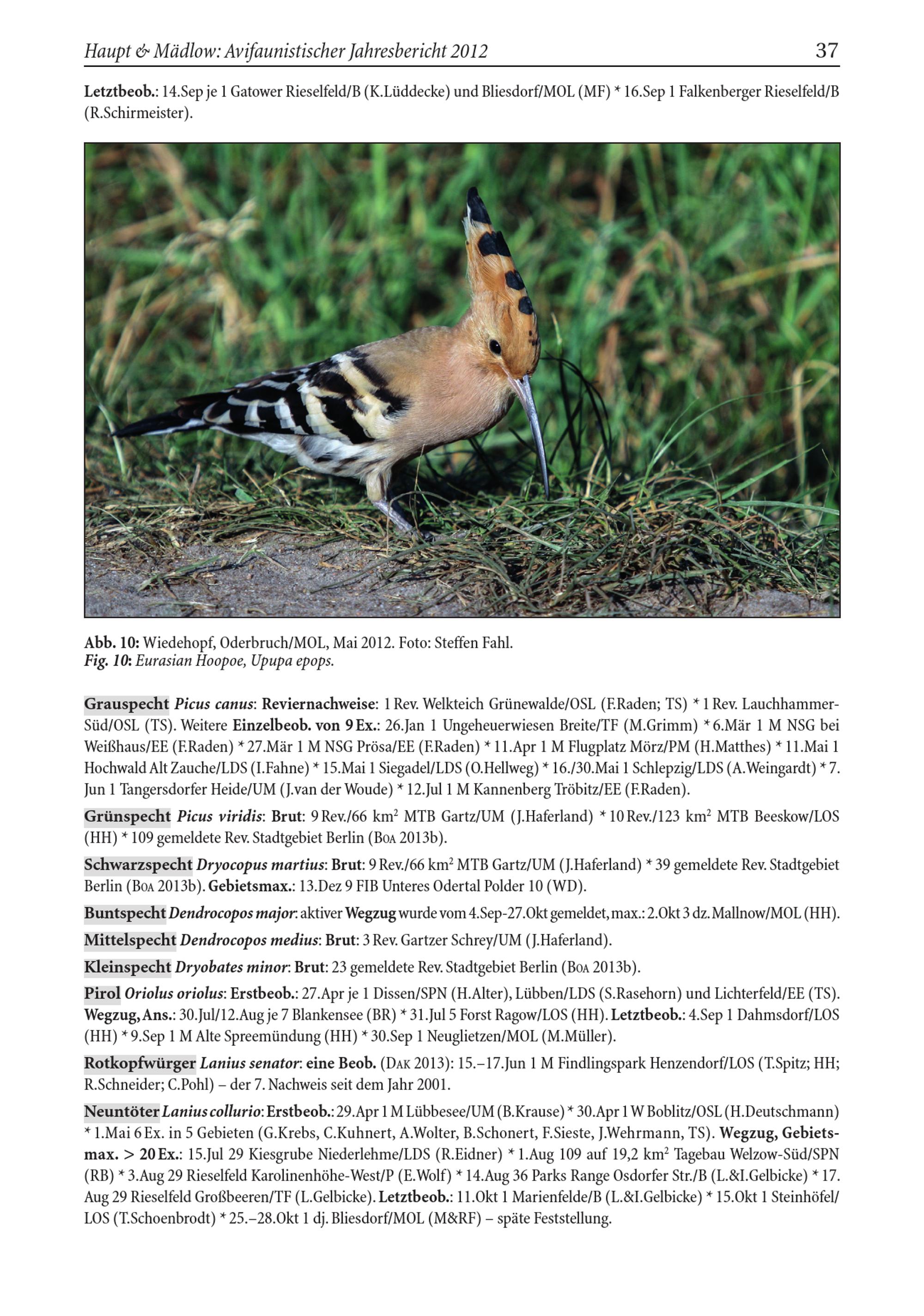 Abb. 10: Wiedehopf, Oderbruch / MOL, Mai 2012. Foto: Steffen Fahl. Fig. 10: Eurasian Hoopoe, Upupa epops .
