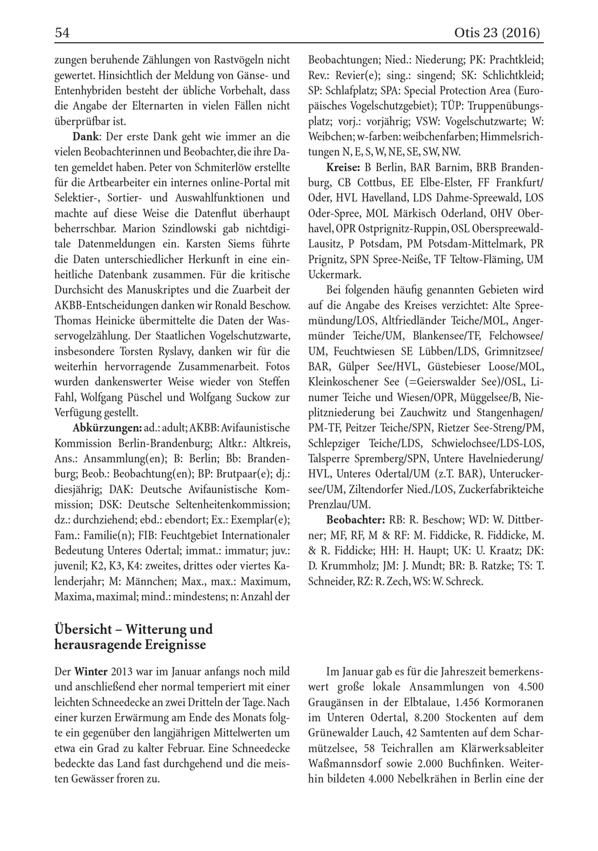 Abkürzungen: ad.: adult; AKBB: Avifaunistische Kommission Berlin- Brandenburg; Altkr.: Altkreis, Ans.: Ansammlung( en); B: Berlin ; Bb : Branden burg ; Beob.: Beobachtung( en); BP: Brutpaar( e); dj.: diesjährig; DAK: Deutsche Avifaunistische Kommission; DSK: Deutsche Seltenheitenkommission; dz.: durchziehend; ebd.: ebendort; Ex.: Exemplar( e); Fam. Familie( n); FIB: Feuchtgebiet Internationaler Bedeutung Unteres Odertal; immat.: immatur; juv.: juvenil; K2, K3, K4: zweites, drittes oder viertes Kalenderjahr; M: Männchen; Max., max.: Maximum, Maxima , maximal; mind.: mindestens; n: Anzahl der