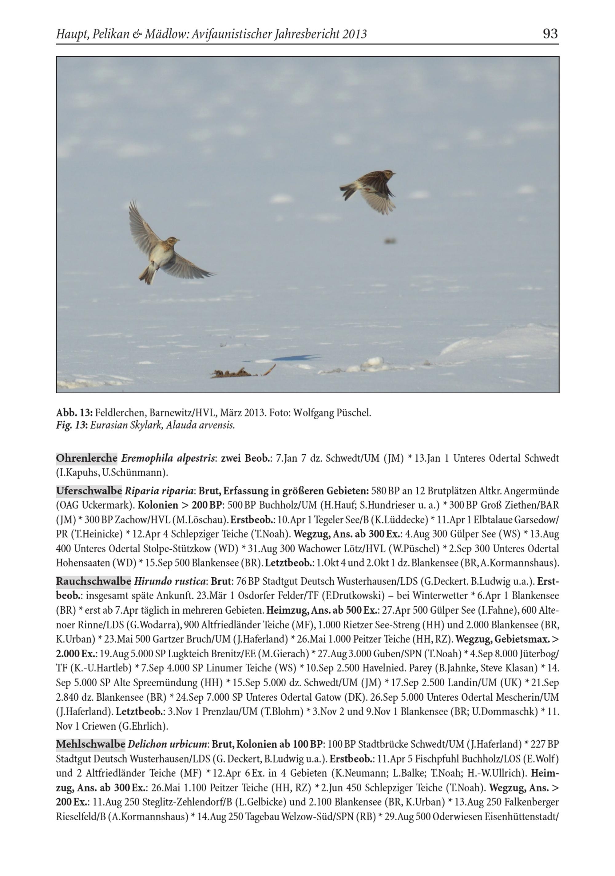Haupt, Pelikan& Mädlow: Avifaunistischer Jahresbericht 2013