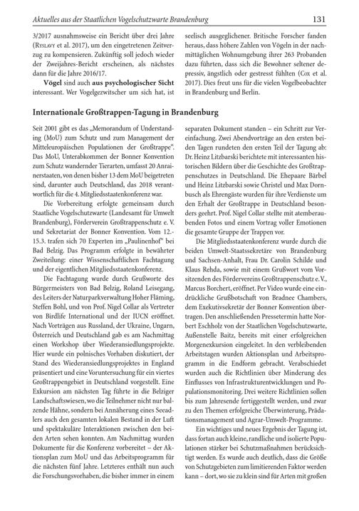 3/2017 ausnahmsweise ein Bericht über drei Jahre ( RYSLAVY et al. 2017), um den eingetretenen Zeitverzug zu kompensieren. Zukünftig soll jedoch wieder der Zweijahres- Bericht erscheinen, als nächstes dann für die Jahre 2016/17.