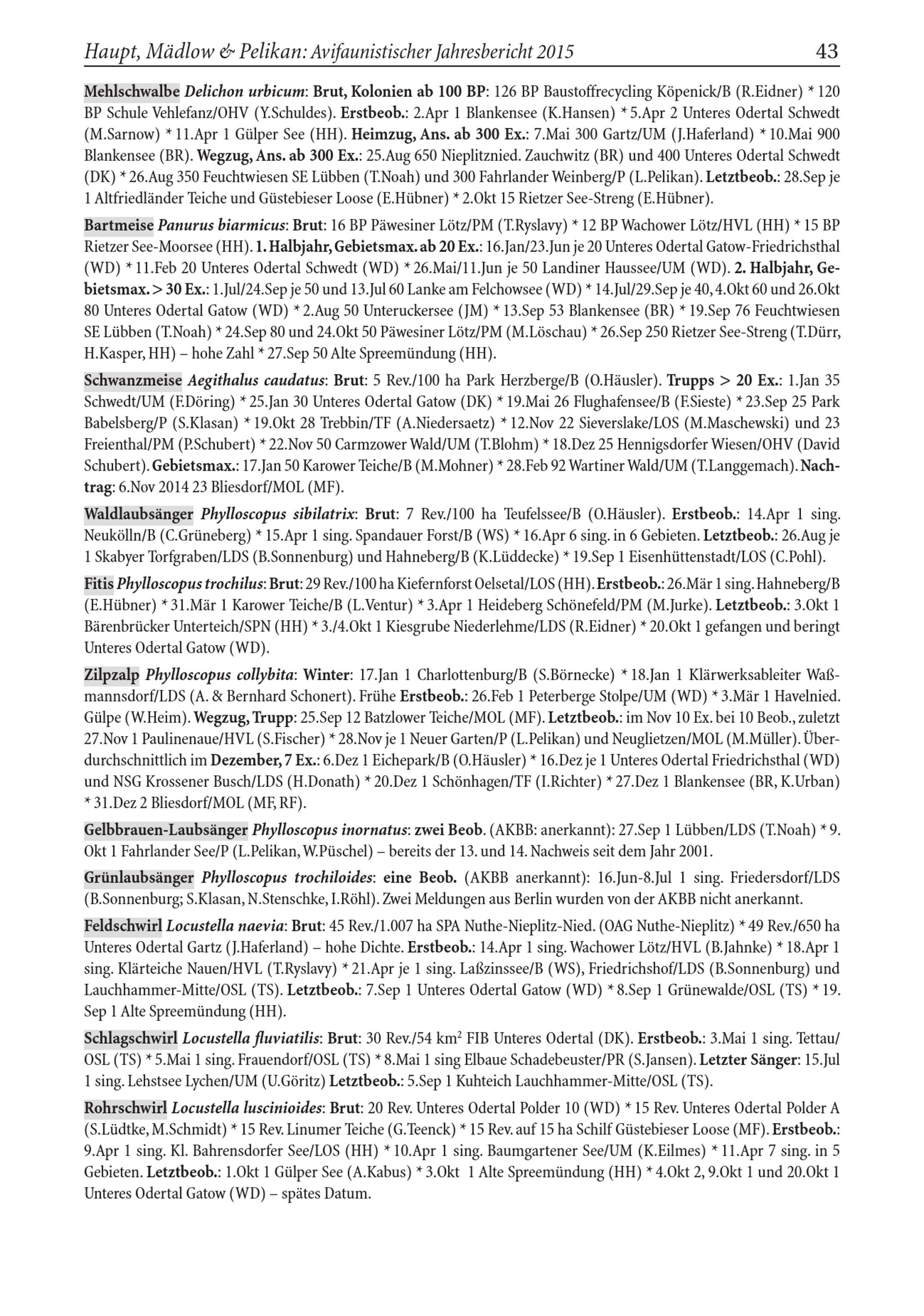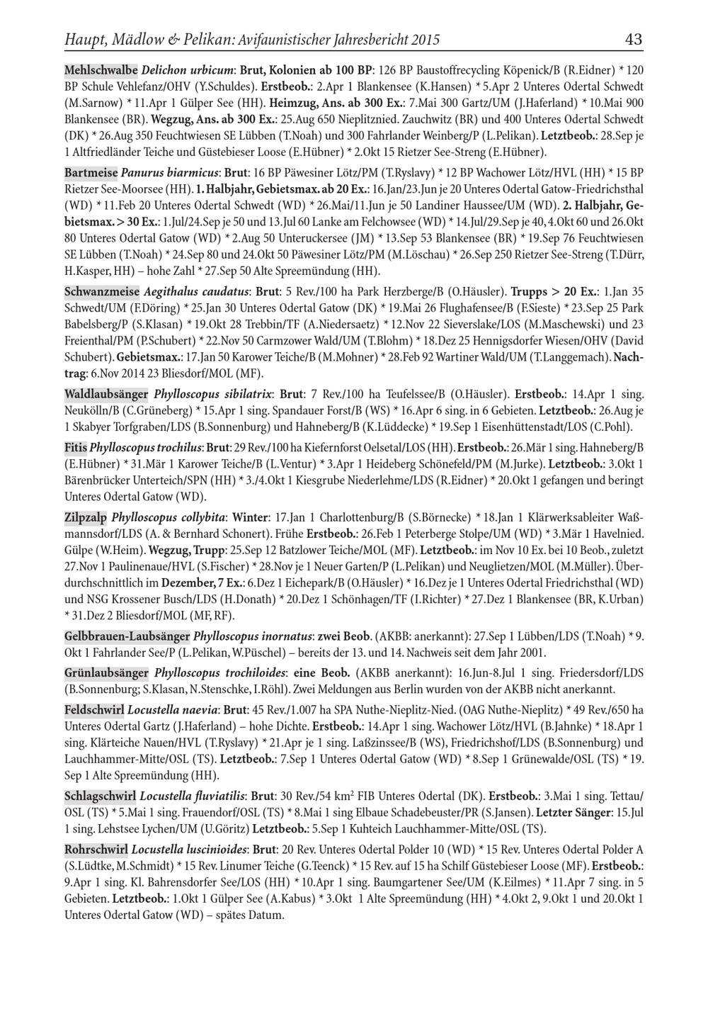 Haupt, Mädlow& Pelikan: Avifaunistischer Jahresbericht 2015