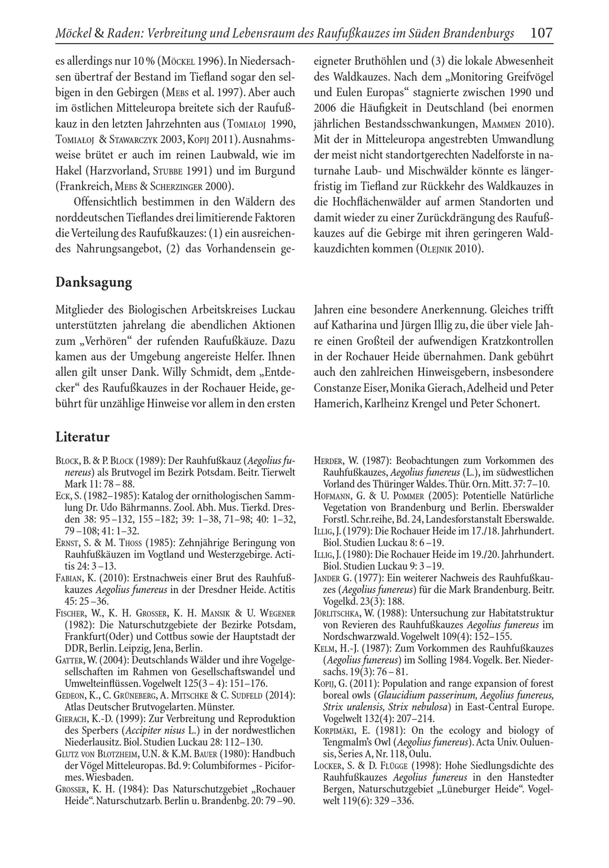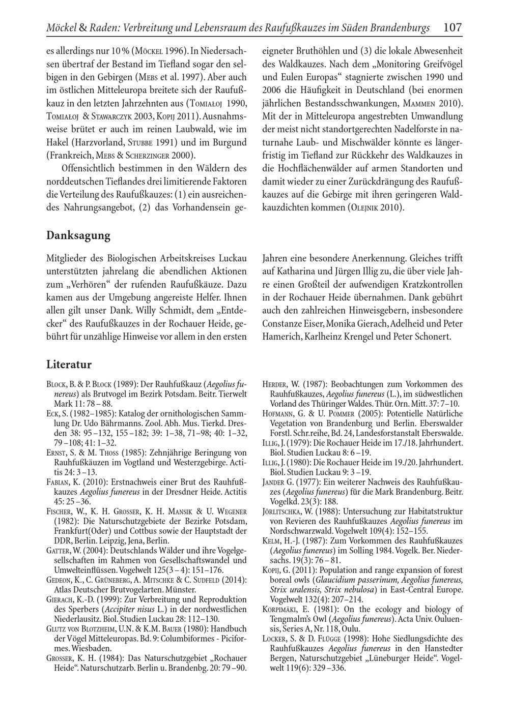 BLOCK, B.& P. BLOCK( 1989): Der Rauhfußkauz( Aegolius fu nereus ) als Brutvogel im Bezirk Potsdam . Beitr. Tierwelt