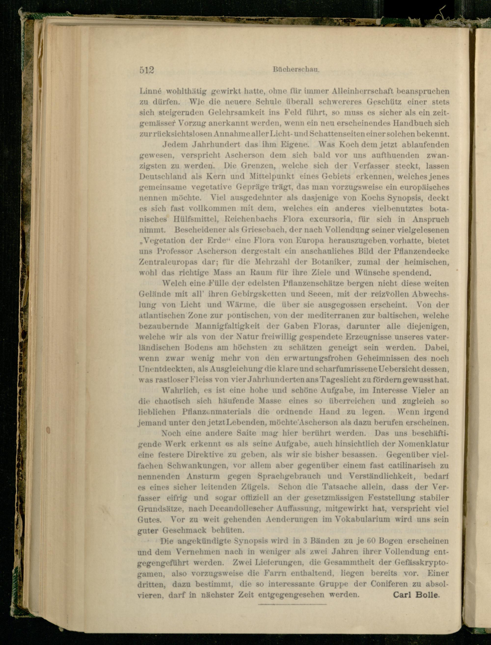 Wahrlich, es ist eine hohe und schöne Aufgabe, im Interesse Vieler an die chaotisch sich häufende Masse eines so überreichen und zugleich so lieblichen Pflanz« nmaterials die ordnende Hand zu legen. Wenn irgend jemand unter den jetztLebenden, möchte Aschereon als dazu berufen erscheinen.