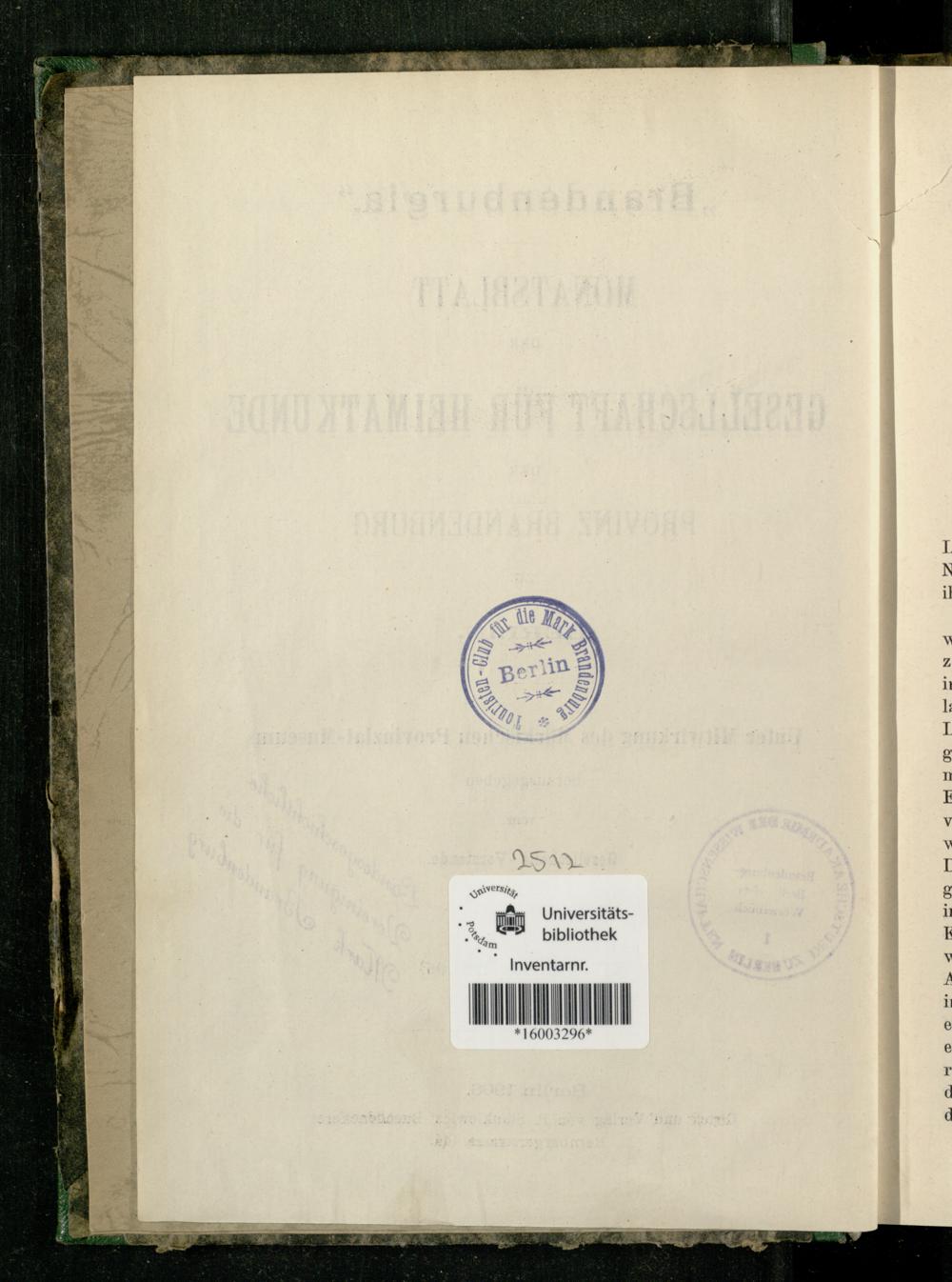 Monatsblatt der Gesellschaft für Heimatkunde und Heimatschutz in der Mark Brandenburg,...