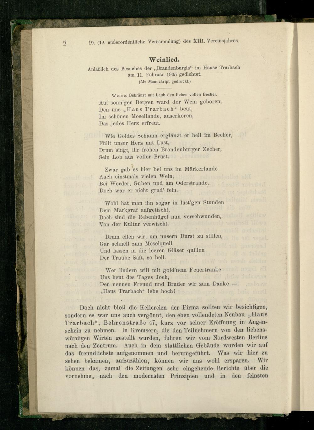 Anläßlich des Besuches der „Brandenburgia“ im Hause Trarbach am 11. Februar 1905 gedichtet.