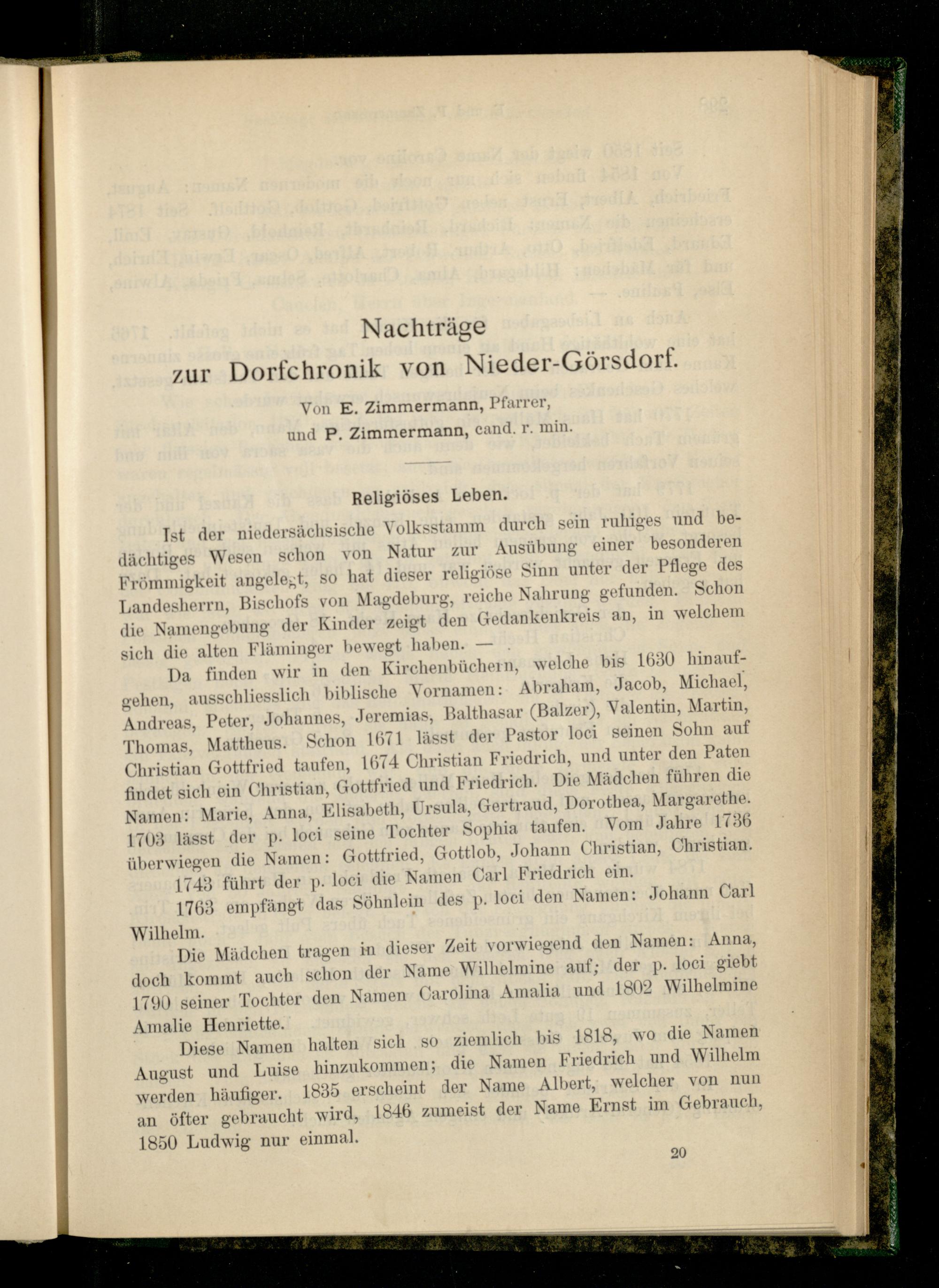 Von E. Zimmermann, Pfarrer, und P. Zimmermann, cand. r. min.