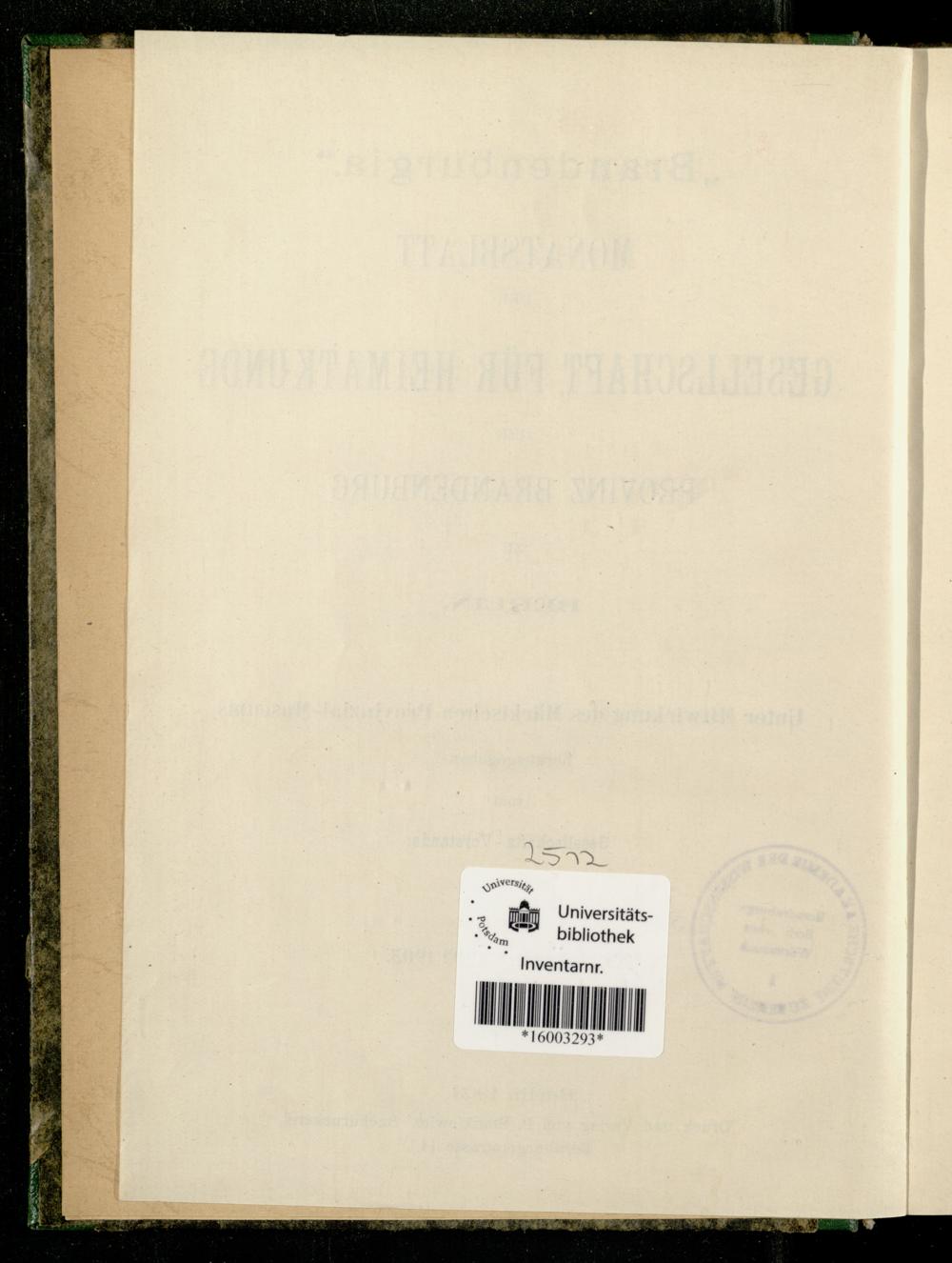 Monatsblatt der Gesellschaft für Heimatkunde und Heimatschutz in der Mark Brandenburg,...