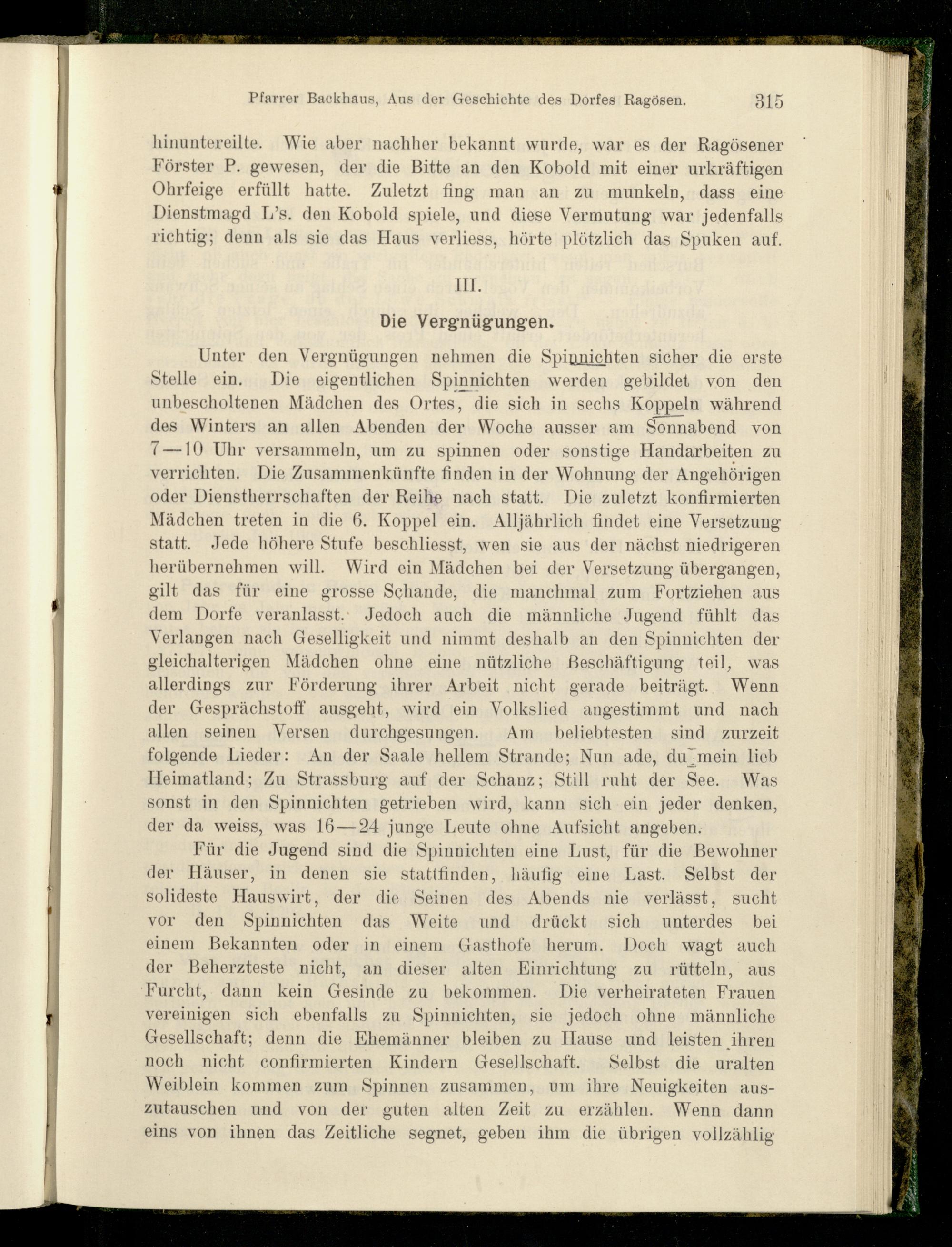Heimatland; Zu Strassburg auf der Schanz; Still ruht der See. Was sonst in den Spinnichten getrieben wird, kann sich ein jeder denken, der da weiss, was 16—24 junge Leute ohne Aufsicht angeben.