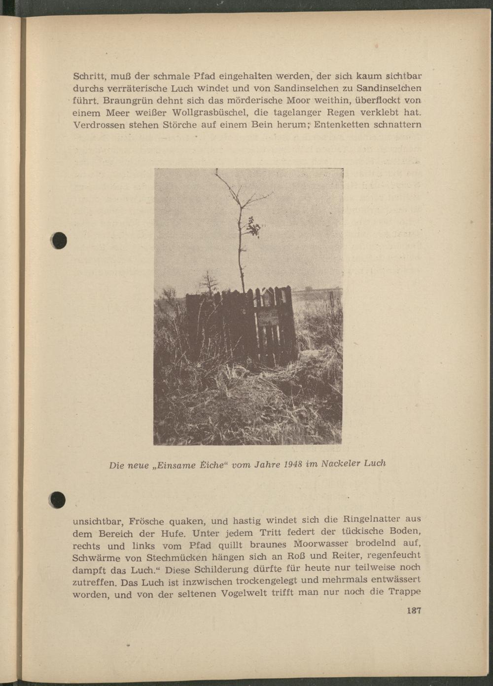 Die neue „Einsame Eiche“ vom Jahre 1948 im Nackeier Luch