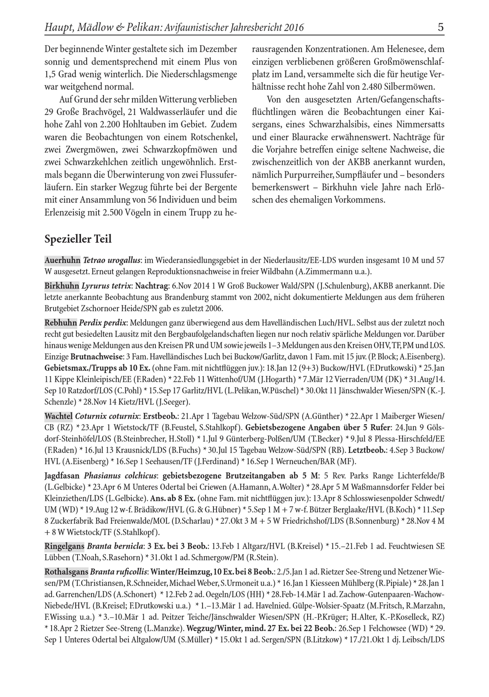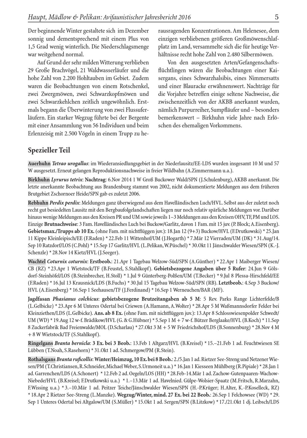 Haupt, Mädlow& Pelikan: Avifaunistischer Jahresbericht 2016