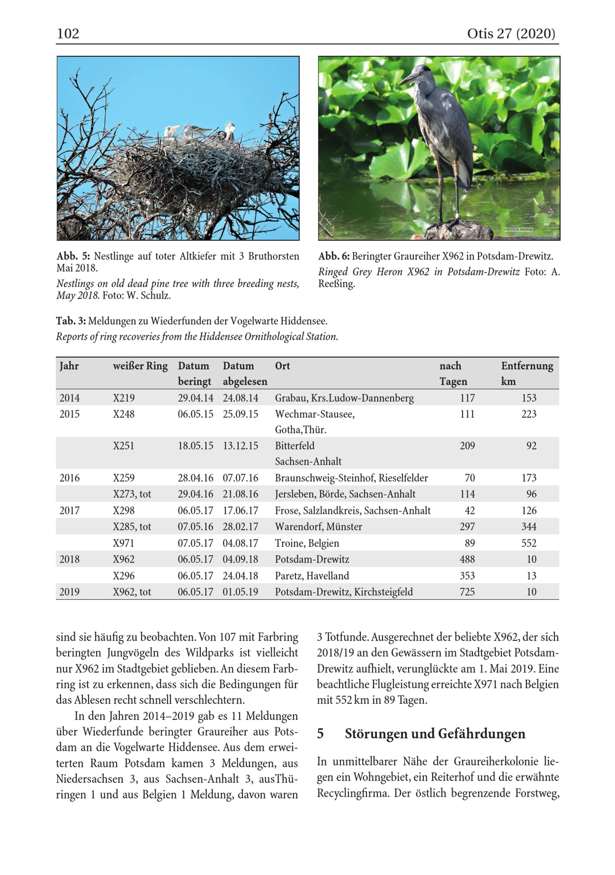 Abb. 6: Beringter Graureiher X962 in Potsdam- Drewitz. Ringed Grey Heron X962 in Potsdam- Drewitz Foto: A. Reeẞing.