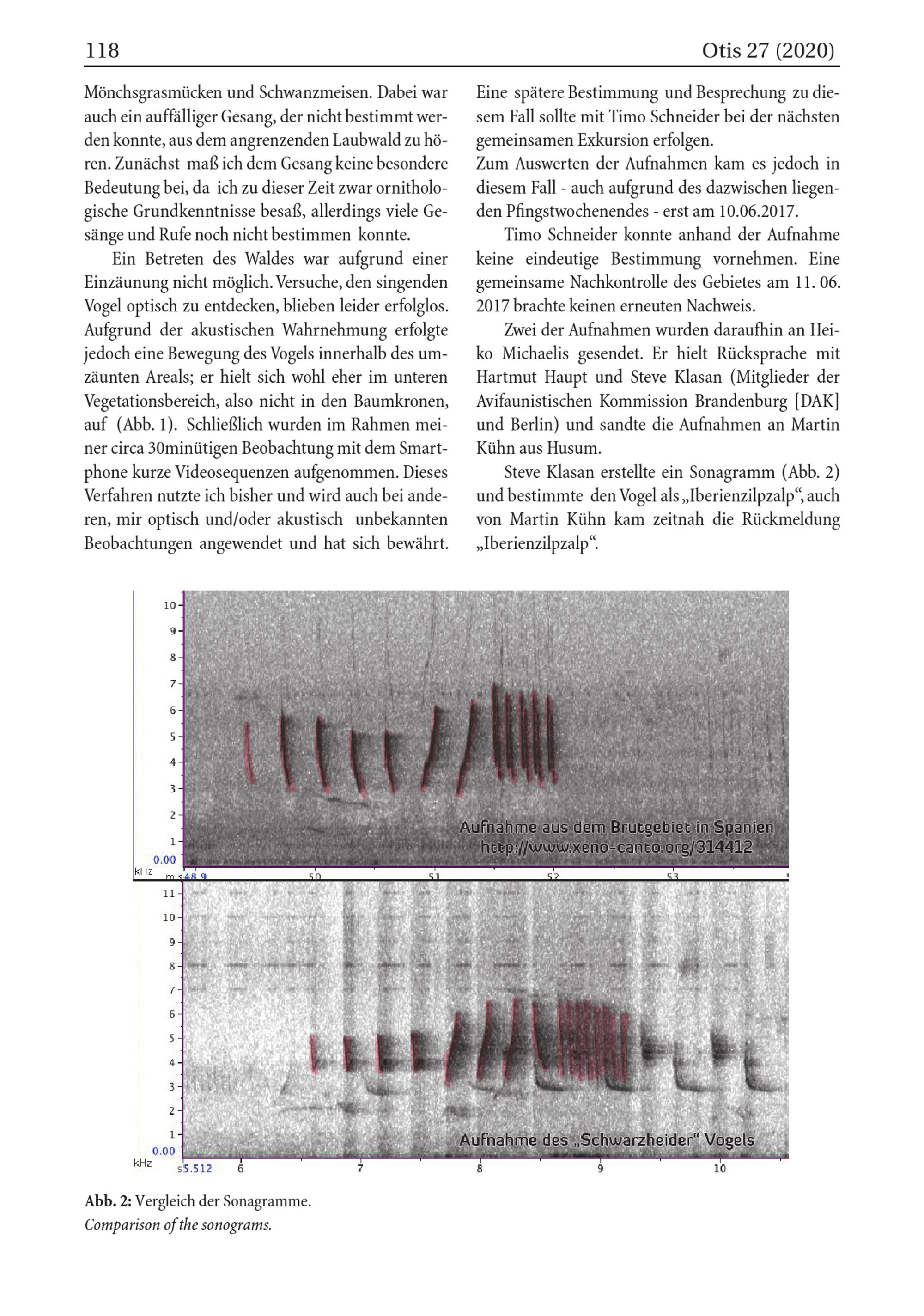 Steve Klasan erstellte ein Sonagramm( Abb. 2) und bestimmte den Vogel als„ ,, Iberienzilpzalp", auch von Martin Kühn kam zeitnah die Rückmeldung „ Iberienzilpzalp".