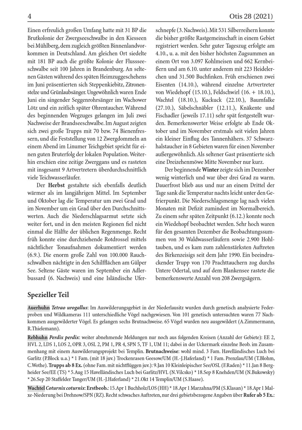 Rebhuhn Perdix perdix : weiter abnehmende Meldungen nur noch aus folgenden Kreisen( Anzahl der Gebiete): EE 2, HVL 2, LDS 1, LOS 2, OPR 3, OSL 2, PM 1, PR 4, SPN 5, TF 1, UM 11; dabei in der Uckermark einzelne Beob. im Zusammenhang mit einem Auswilderungsprojekt bei Templin . Brutnachweise: wohl mind. 3 Fam. Havelländisches Luch bei Garlitz ( P.Block u.a.)* 1 Fam.( mit 18 juv.) Trockenrasen Geesow/ UM( H.- J.Haferland)* 1 Fam. Prenzlau / UM( T.Blohm, C.Wothe). Trupps ab 8 Ex.( ohne Fam. mit nichtflüggen juv.): 9.Jan 10 Kleinleipischer See/ OSL ( F.Raden)* 11.Jan 8 Bergheider See/ EE( TS)* 5.Aug 15 Havelländisches Luch bei Garlitz / HVL ( N.Vilcsko)* 18.Sep 8 Knehden/ UM( N.Bukowsky) * 26.Sep 20 Staffelder Tanger / UM( H.- J.Haferland)* 21.Okt 14 Templin / UM( S.Haase).
