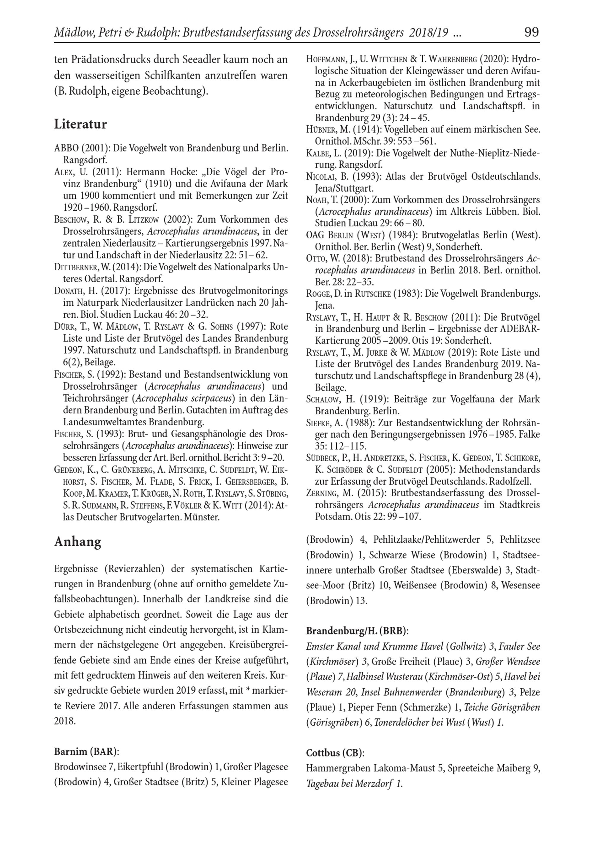 Mädlow, Petri& Rudolph: Brutbestandserfassung des Drosselrohrsängers 2018/19...