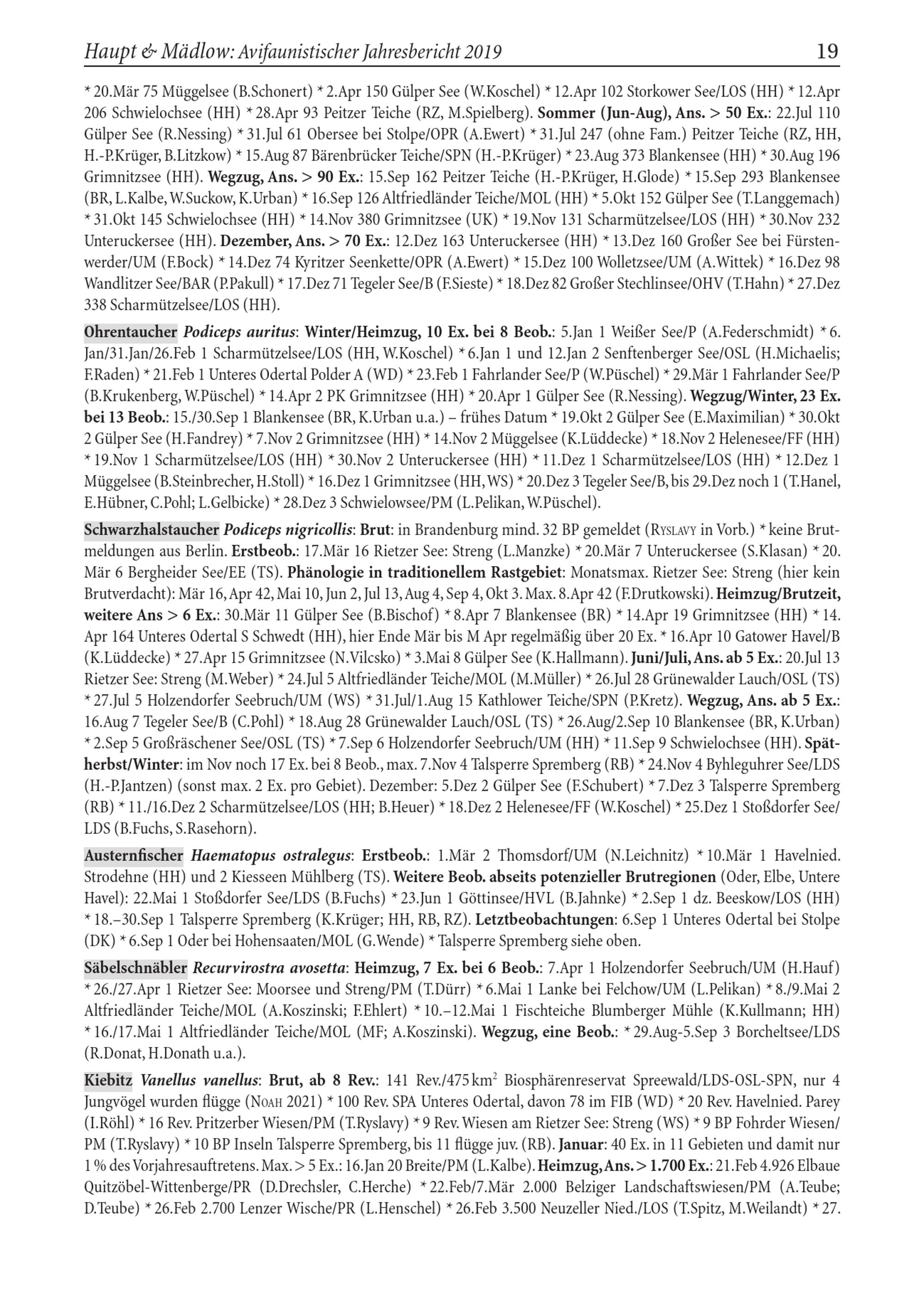 Haupt& Mädlow: Avifaunistischer Jahresbericht 2019