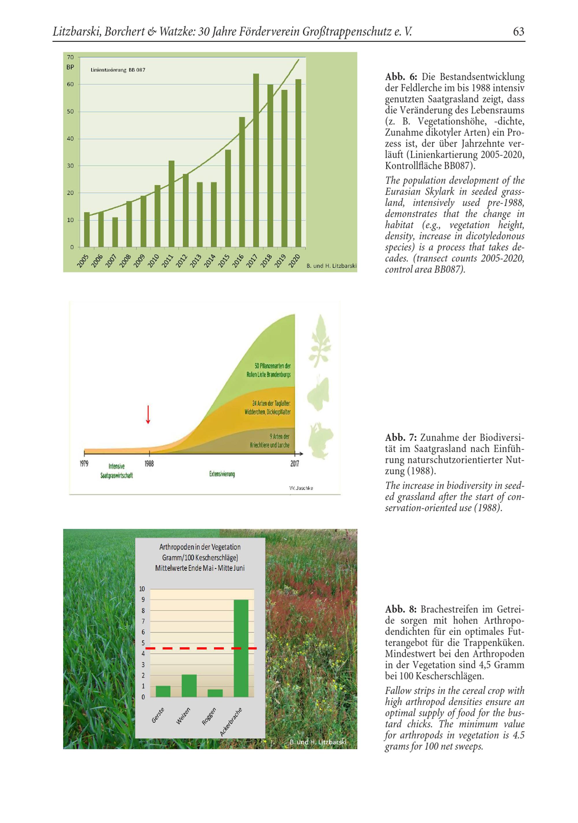 The population development of the Eurasian Skylark in seeded grassland, intensively used pre- 1988, demonstrates that the change in habitat( e.g., vegetation height, density, increase in dicotyledonous species) is a process that takes decades.( transect counts 2005-2020, control area BB087).
