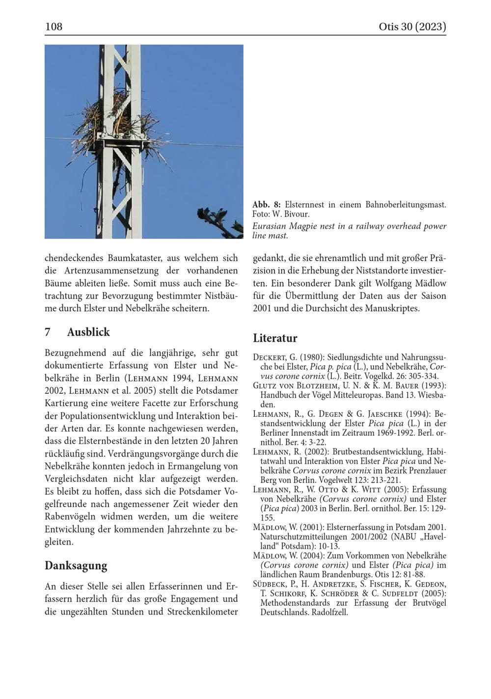 MÄDLOW, W.( 2001): Elsternerfassung in Potsdam 2001. Naturschutzmitteilungen 2001/2002( NABU „ Havel land " Potsdam ): 10-13.
